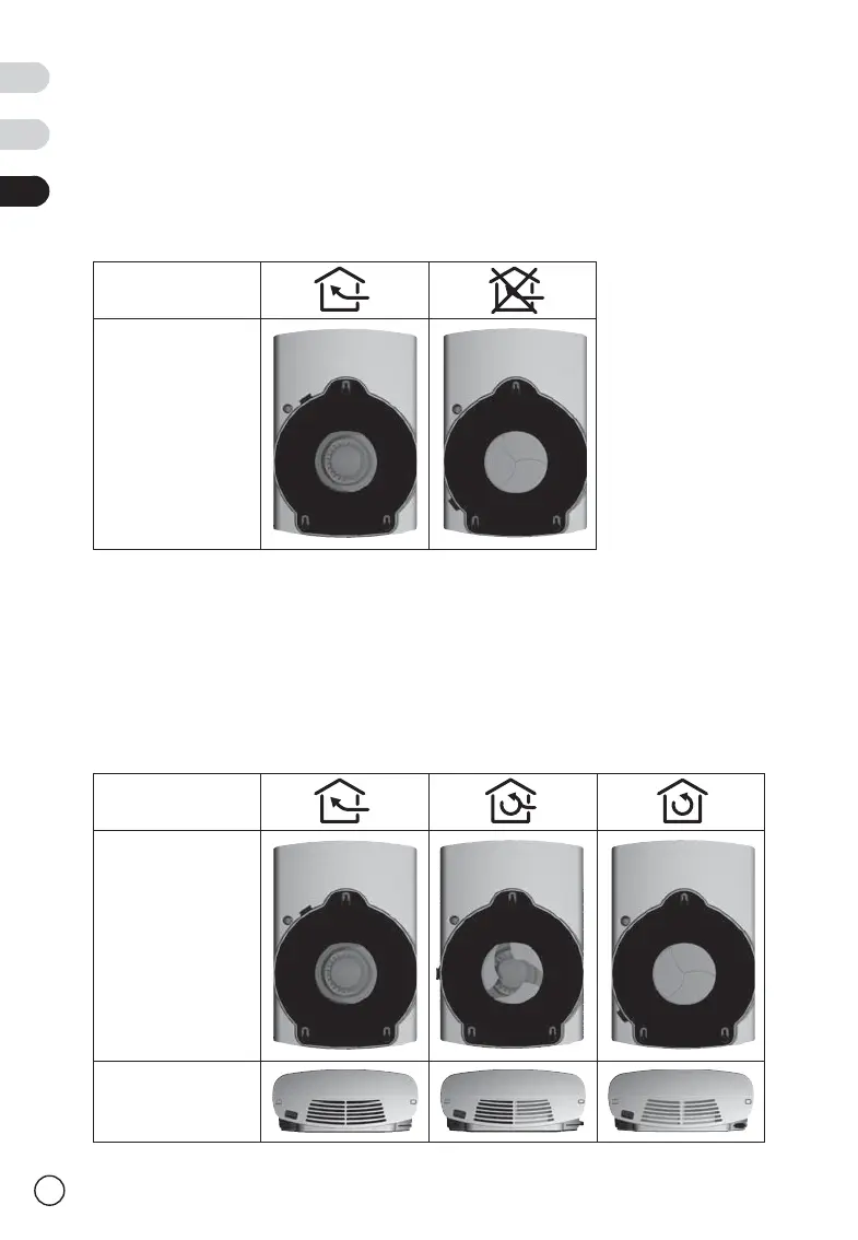 die Innenluftöffnung geöffnet und der Sonair arbeitet im Umluftbetrieb.