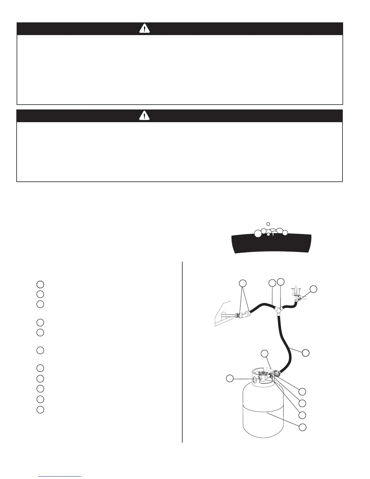 • Every time the LP gas cylinder is refilled or if any of the gas components are replaced.