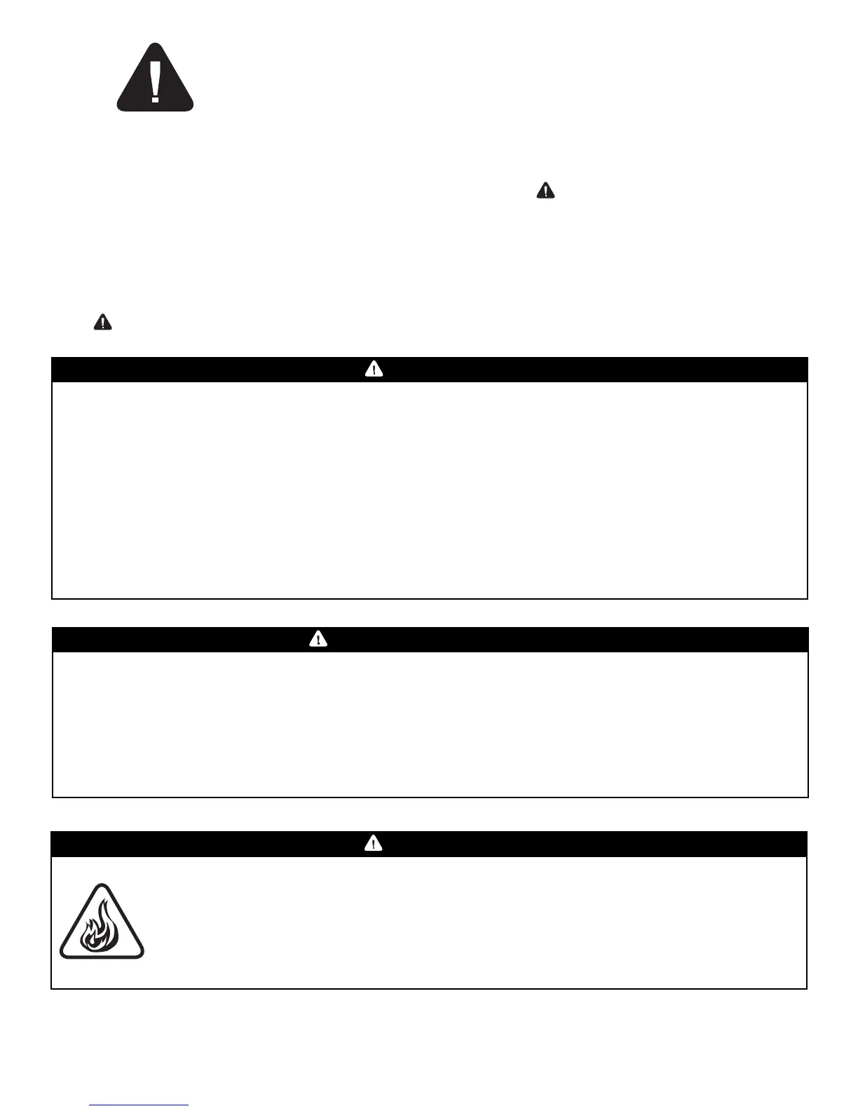 1. NE PAS garder ou utiliser de l’essence ou tout autre inflammable liquide ou vapeur à proximité