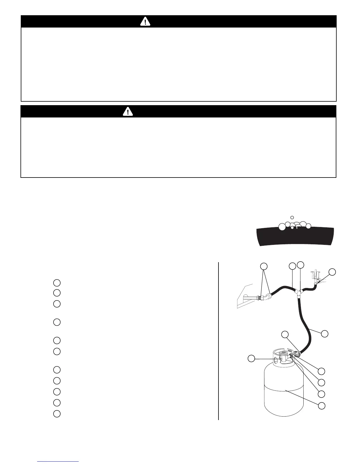 • Ne jamais effectuer une épreuve d’étanchéité pendant l’utilisation du gril ou pendant que le gril