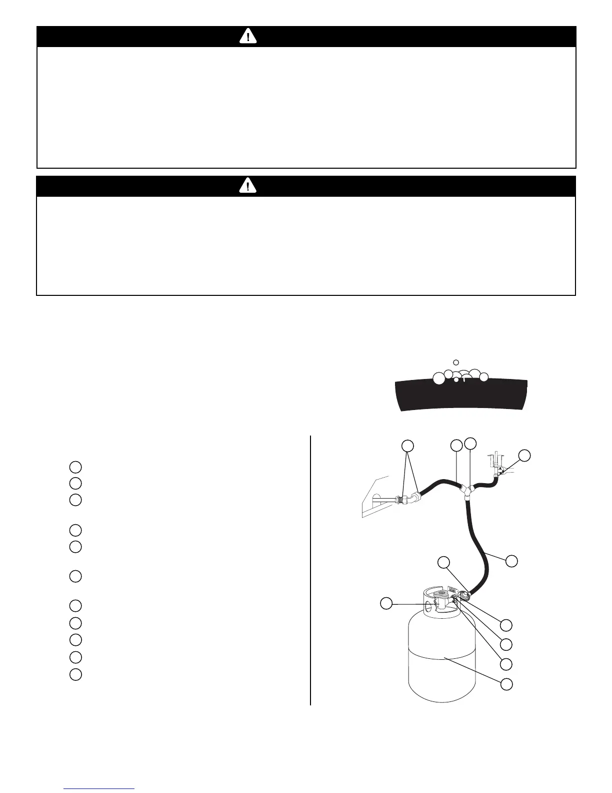 • Every time the LP gas cylinder is refilled or if any of the gas components are replaced.