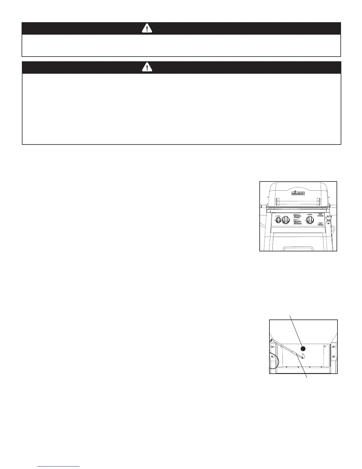 1. OPEN THE GRILL LID before attempting to light a burner so that fumes do not accumulate inside