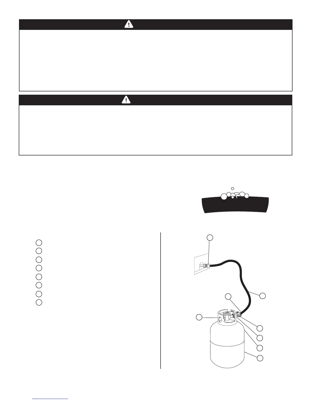 • Every time the LP gas cylinder is refilled or if any of the gas components are replaced.