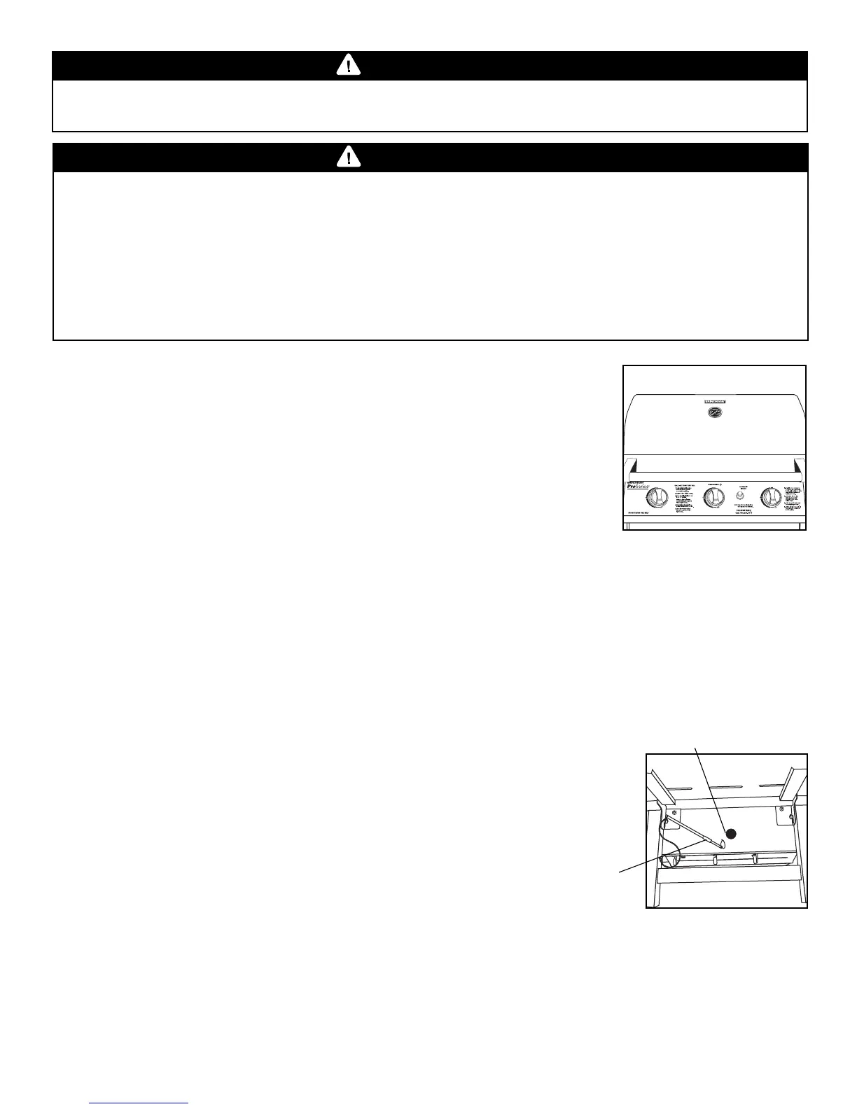 1. OPEN THE GRILL LID before attempting to light a burner so that fumes do not accumulate inside