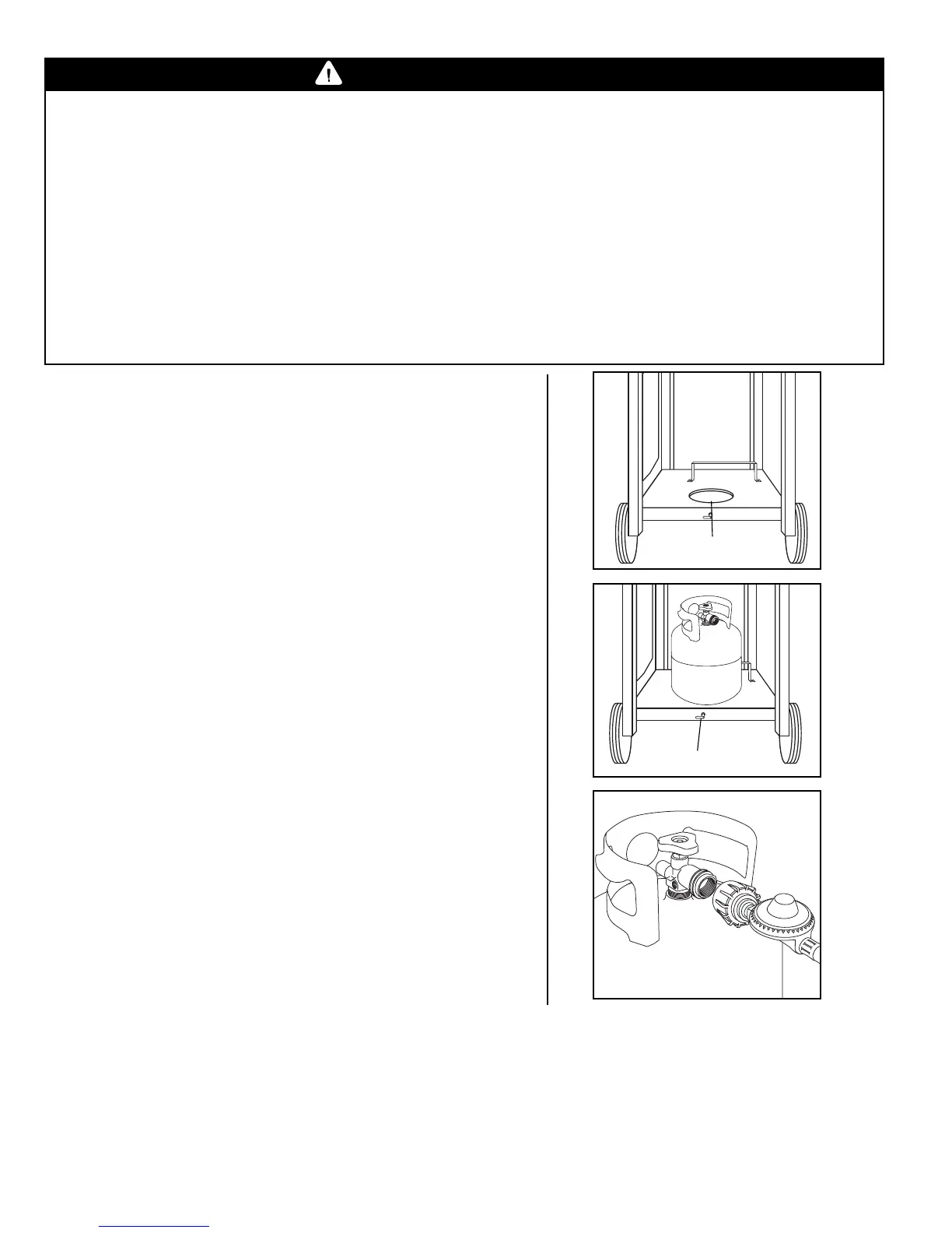• Sólo los distribuidores de gas de propano líquido capacitados deben llenar o reparar su cilindro.