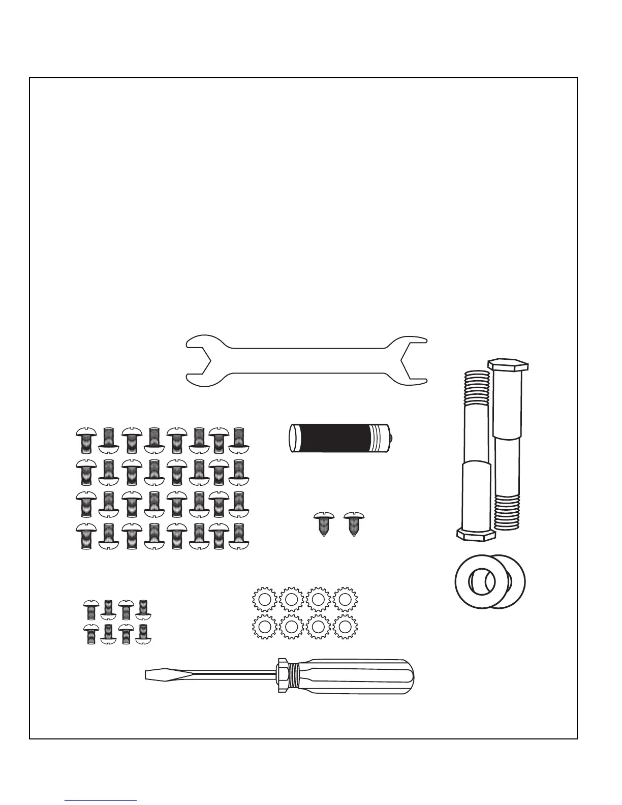 Make sure you have all items listed under PARTS LIST and PARTS BAG CONTENTS before
