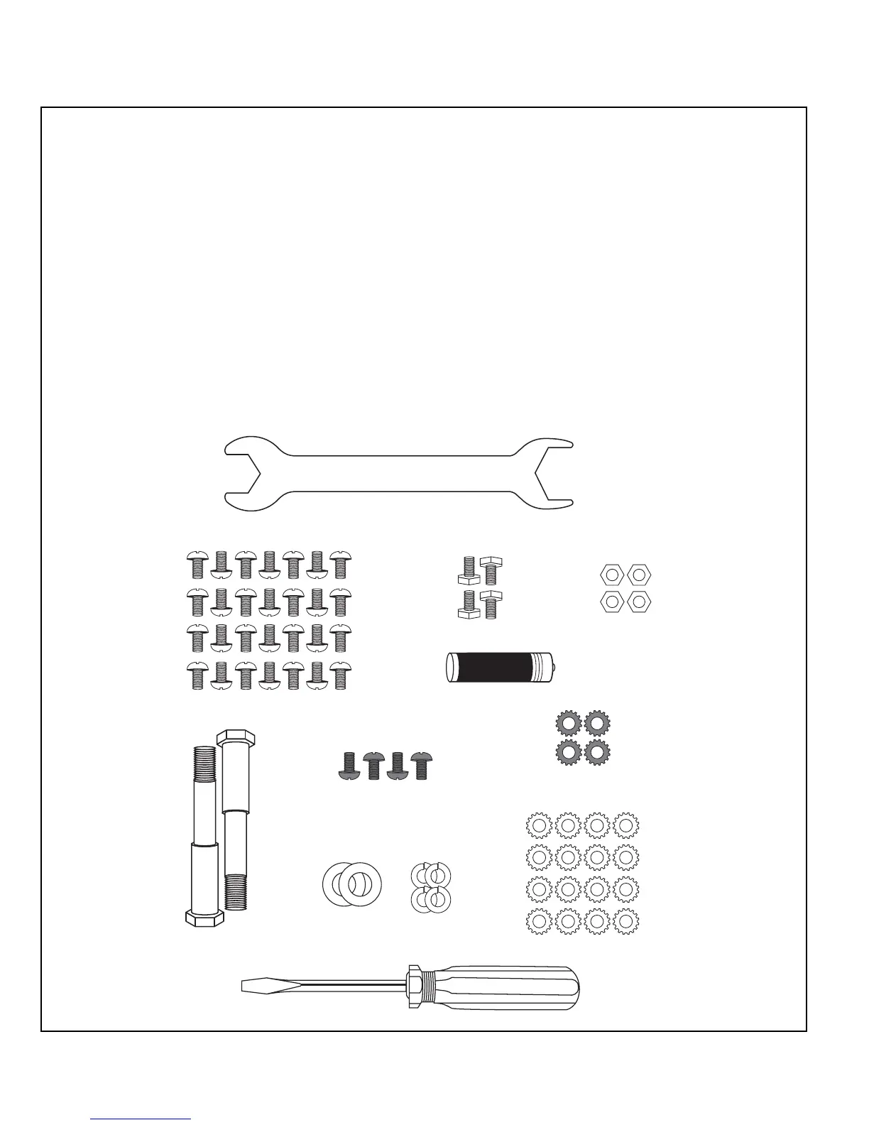 Make sure you have all items listed under PARTS LIST and PARTS BAG CONTENTS before