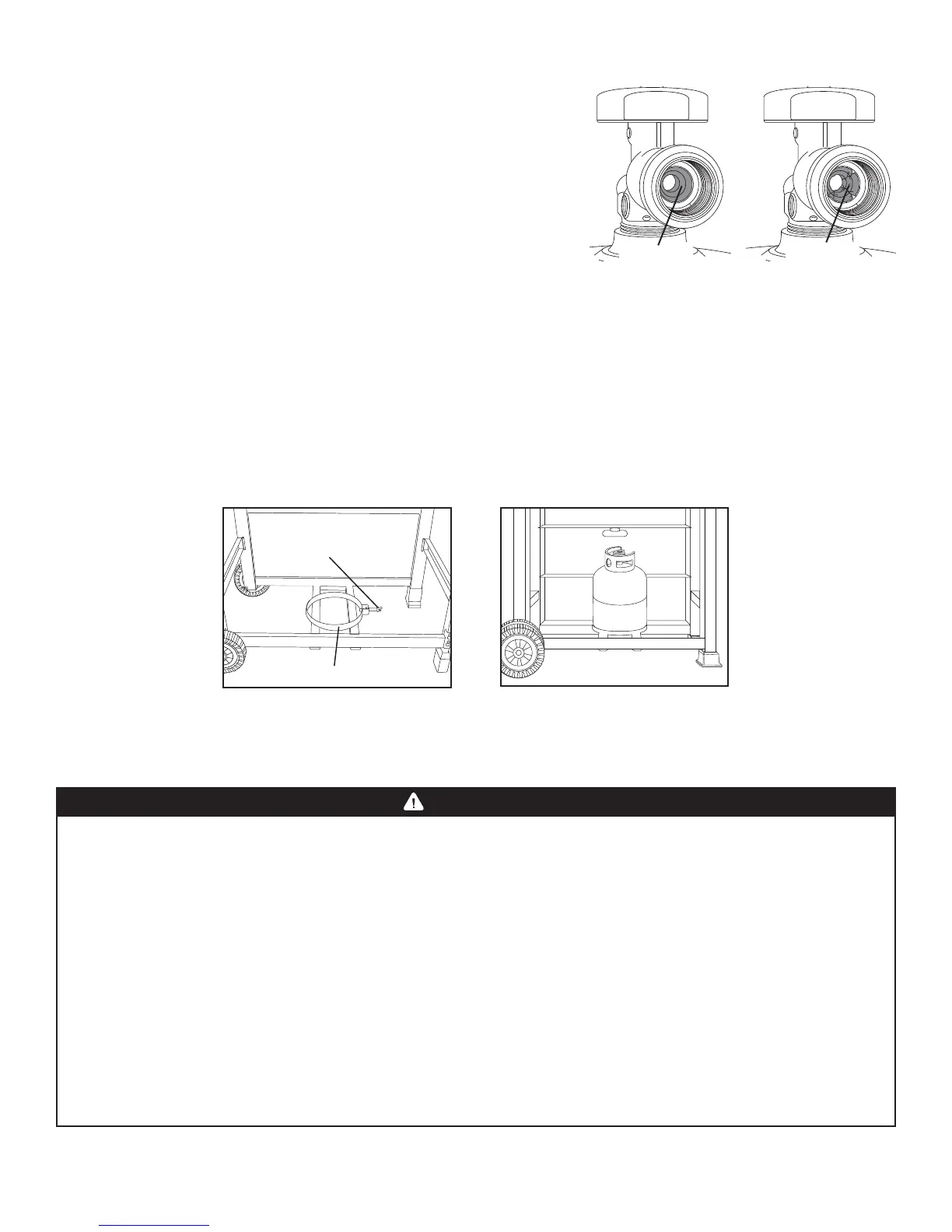 cracks or deterioration. Do not use propane tank with damaged seal as a gas leak may occur.