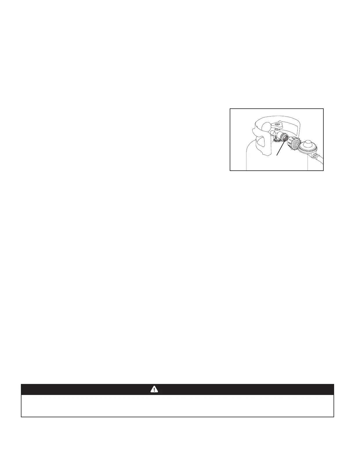 from cylinder. Wait two minutes, reattach hose and regulator and perform leak test.