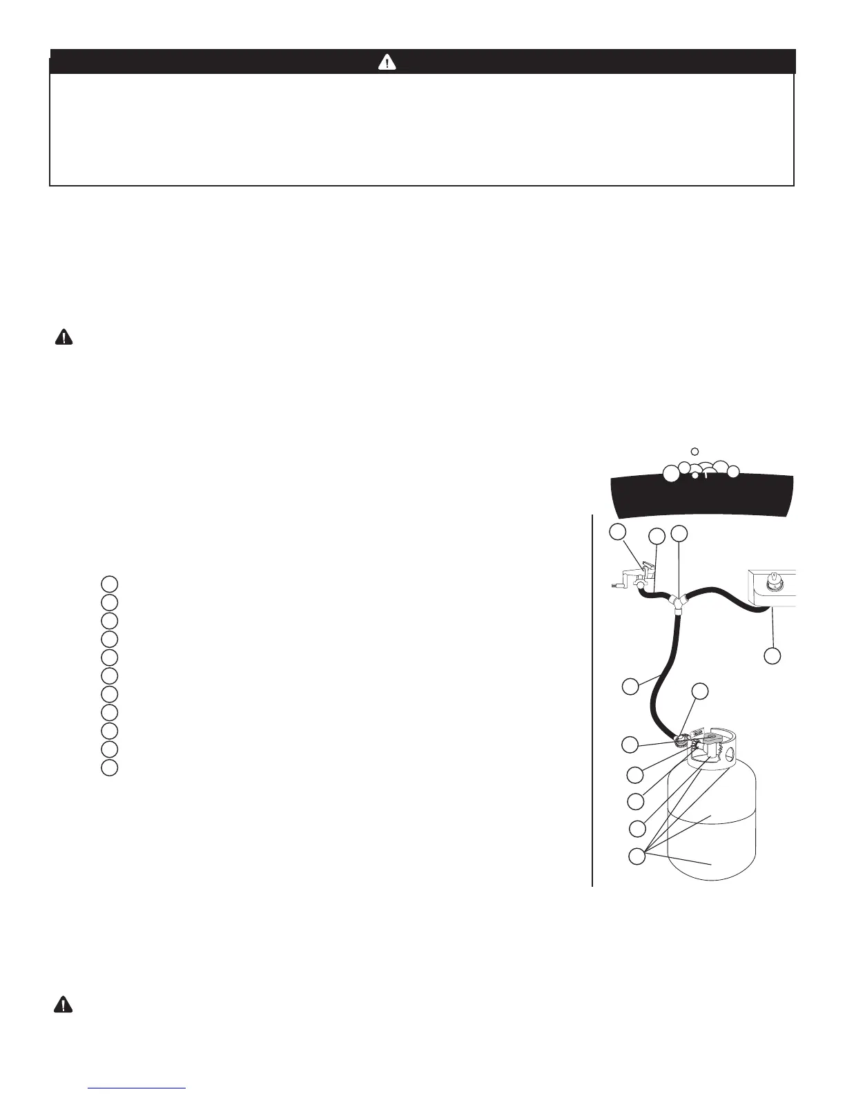 • Cada vez que el cilindro de gas LP se vuelve a cargar o se canjea, o si se desconecta o se reemplaza cualquiera de los