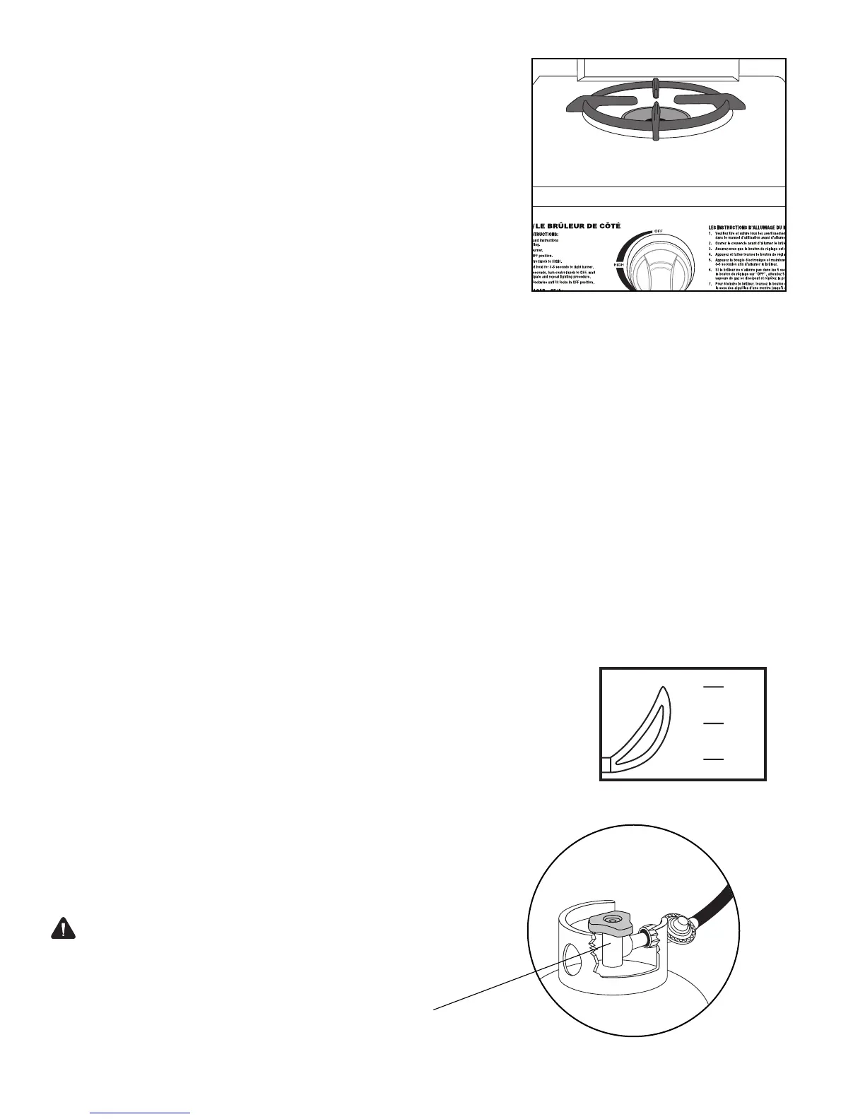 4. Tourner la manette du brûleur latéral en position «HIGH» (maximum). Le brûleur doit s’allumer