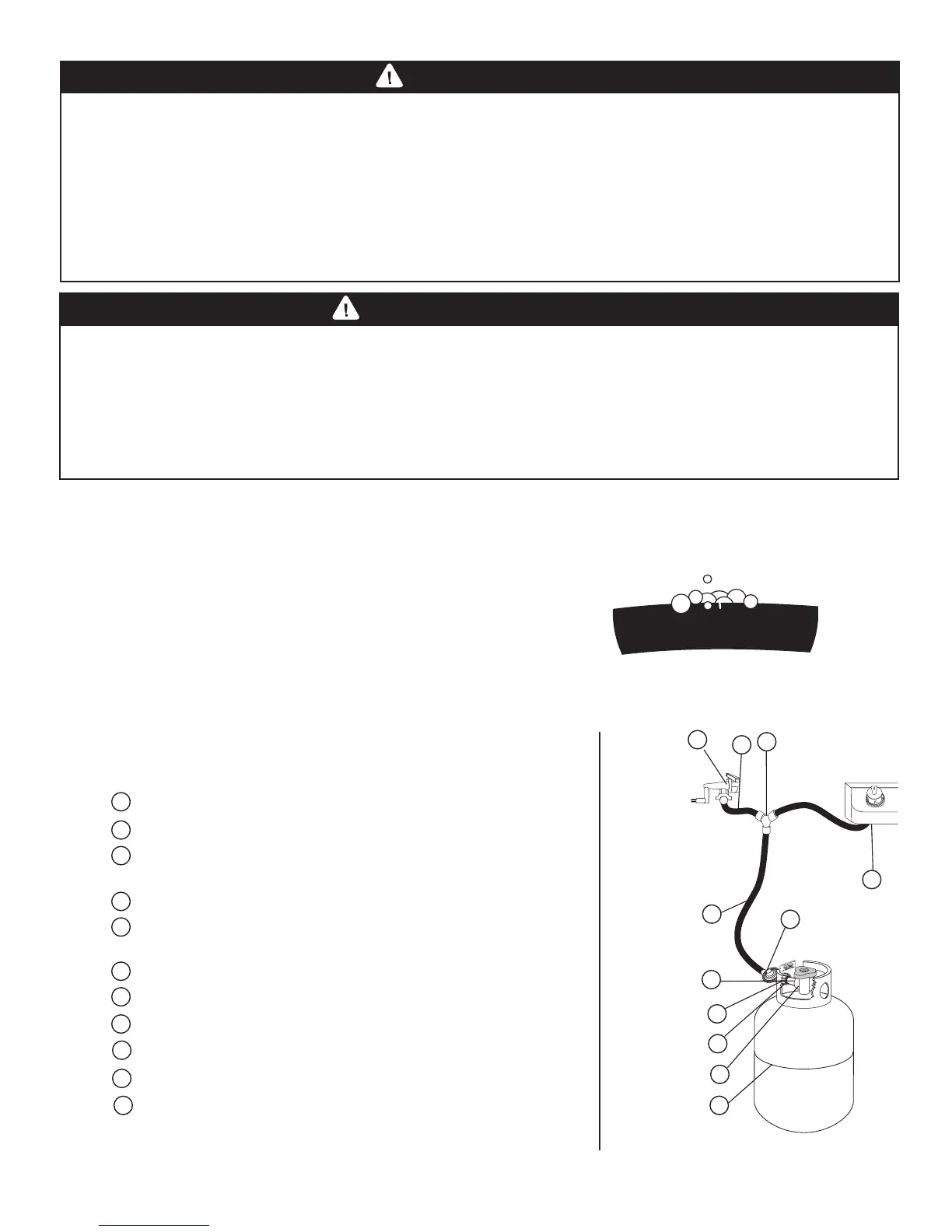 • Nunca realice una prueba para detectar fugas mientras está usando la parrilla o con la