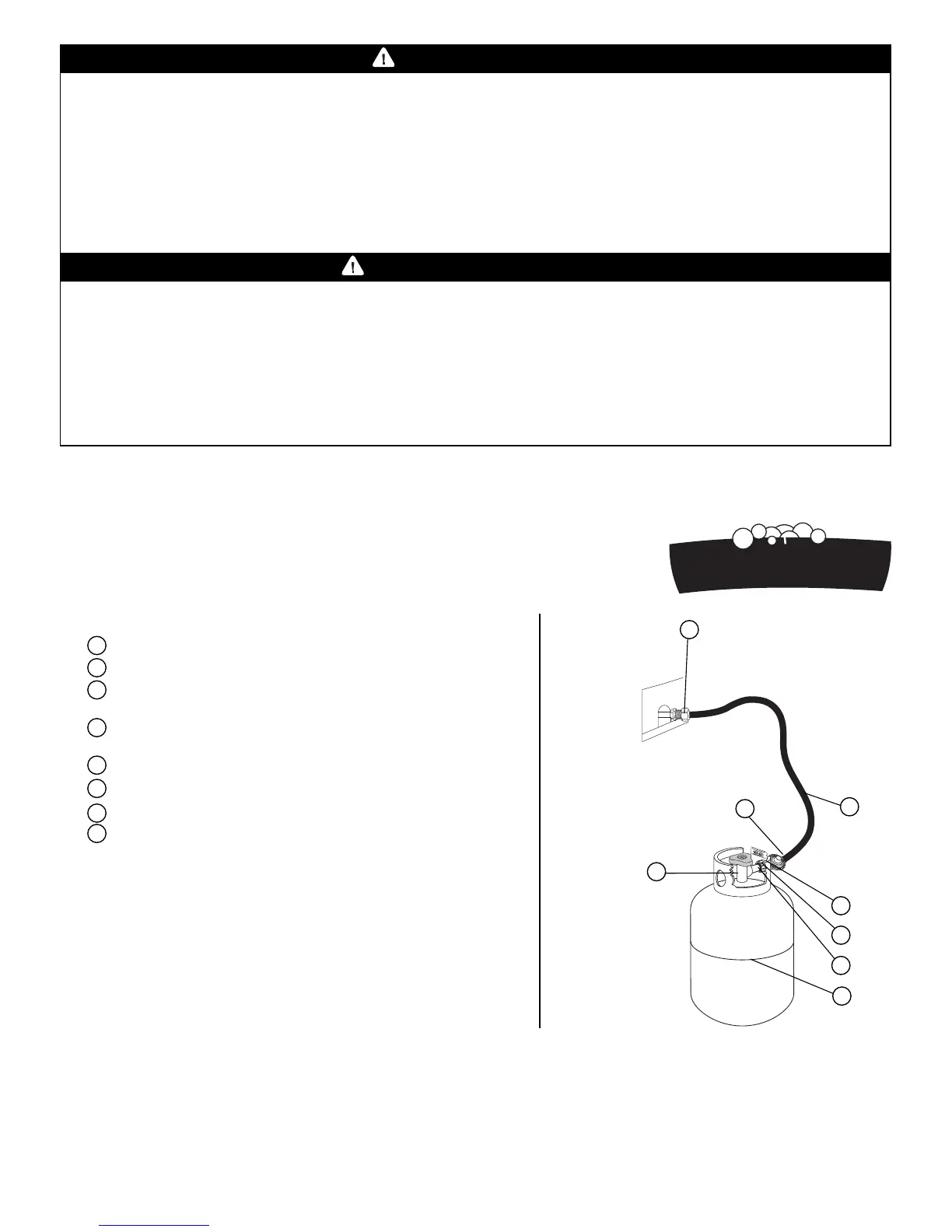 • Ne jamais effectuer une épreuve d’étanchéité pendant l’utilisation du gril ou pendant que le gril