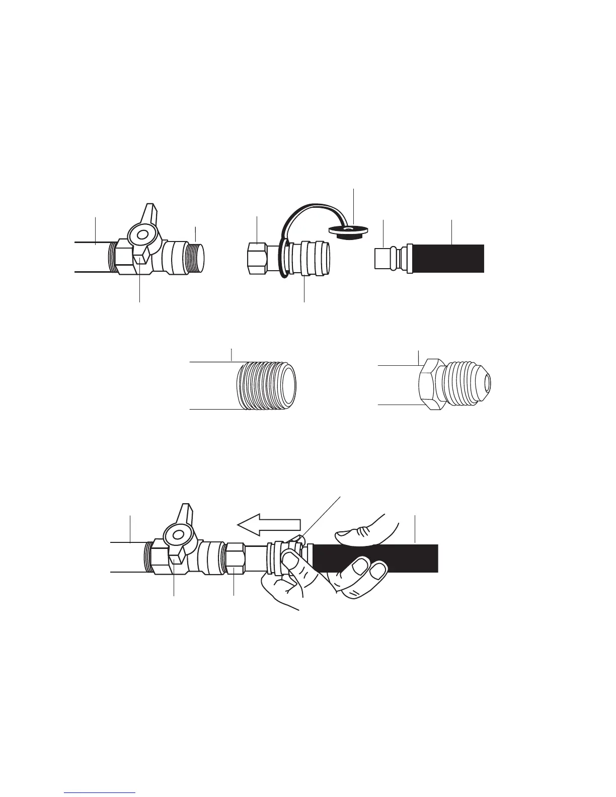1. Coat pipe nipple with gas resistant teflon tape or pipe dope. Tighten quick-disconnect coupling onto