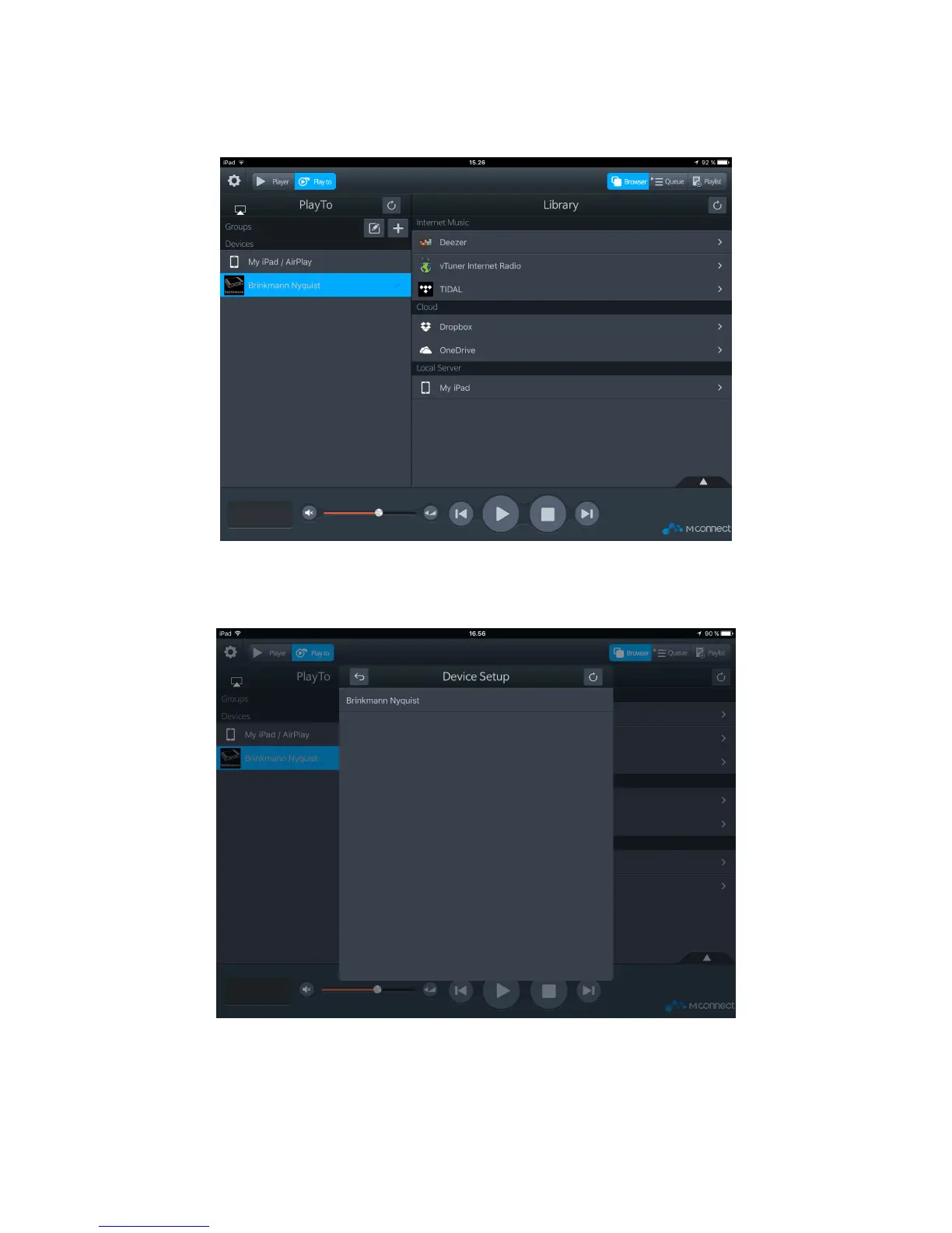 Brinkmann Nyquist - mControl App Usage; Playback Device Selection; Device Setup and Firmware Update