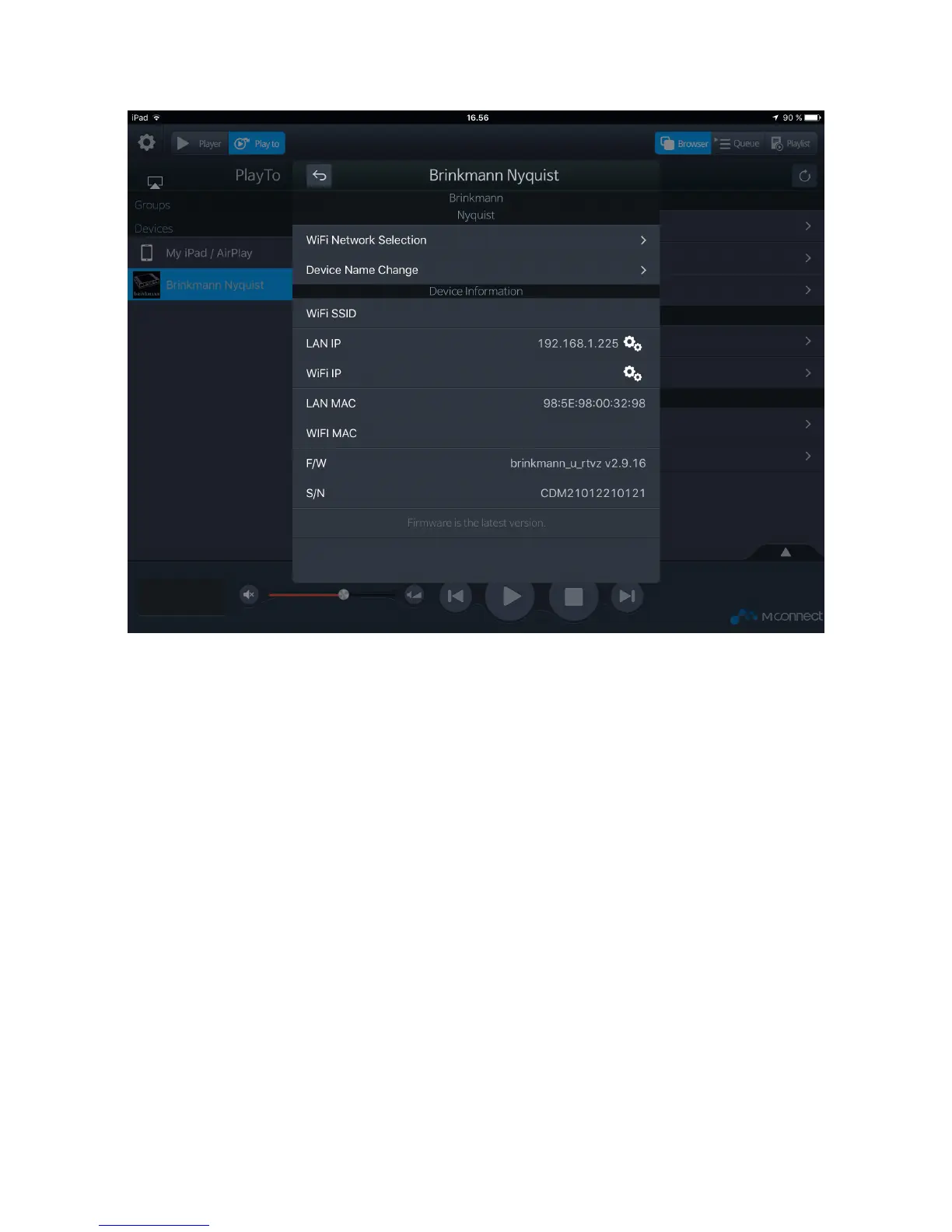 Brinkmann Nyquist - mControl App Device Information; Network Interface Details; Firmware Version Status