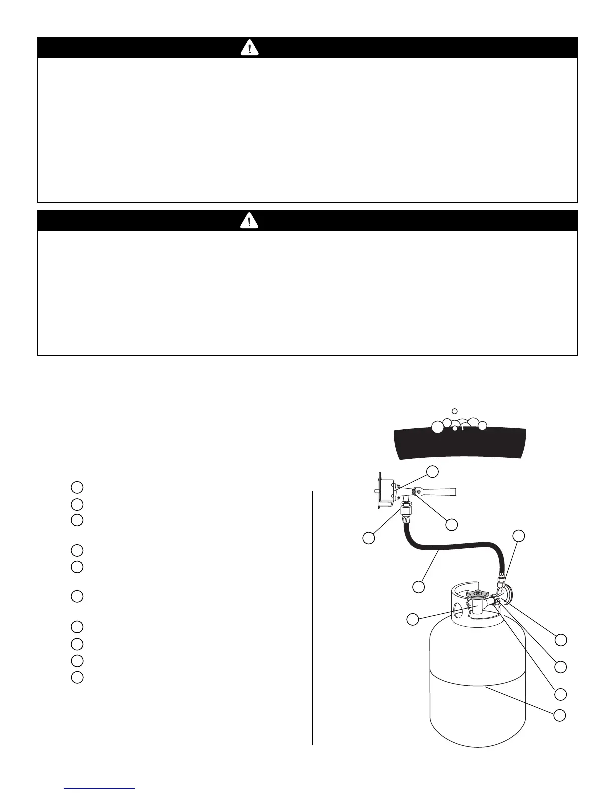 • Every time the LP gas cylinder is refilled or if any of the gas components are replaced.