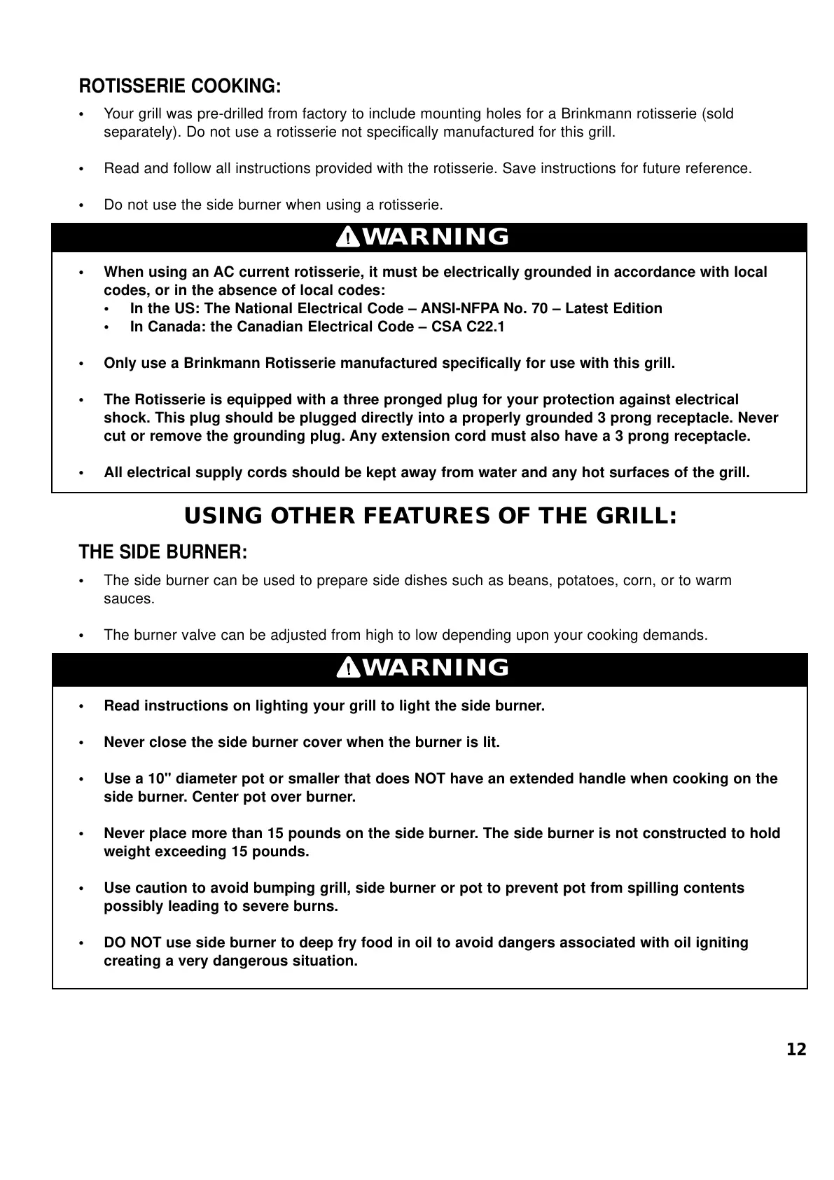 • Only use a Brinkmann Rotisserie manufactured specifically for use with this grill.
