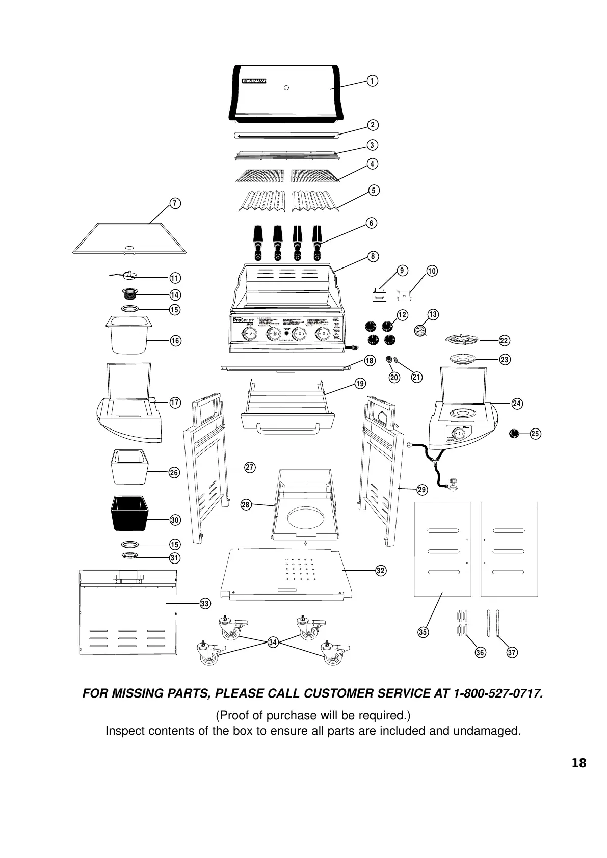 FOR MISSING PARTS, PLEASE CALL CUSTOMER SERVICE AT 1-800-527-0717.