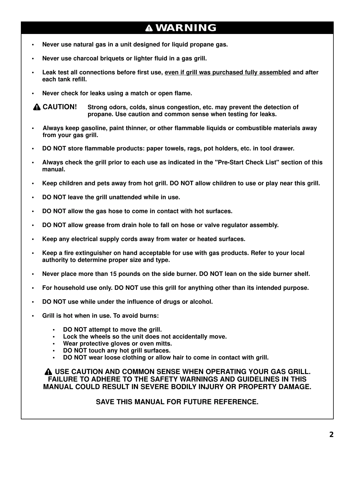 USE CAUTION AND COMMON SENSE WHEN OPERATING YOUR GAS GRILL.