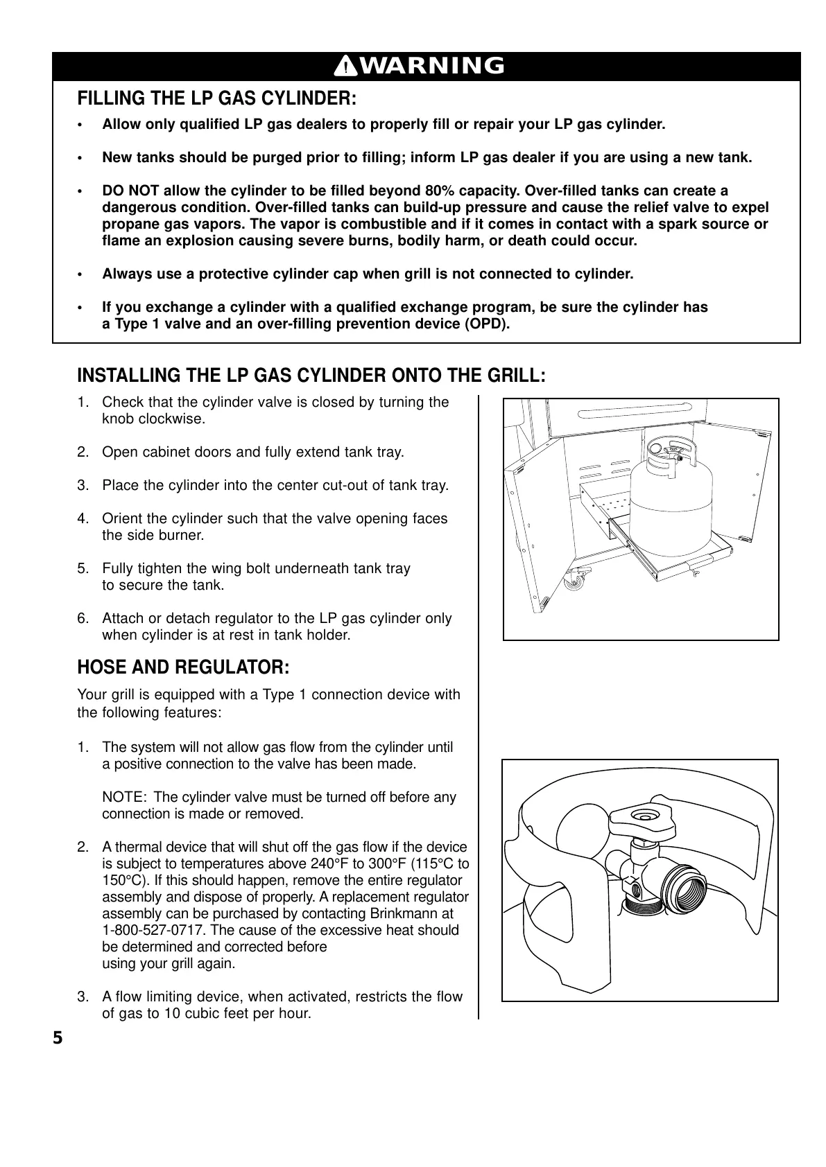 • Allow only qualified LP gas dealers to properly fill or repair your LP gas cylinder.