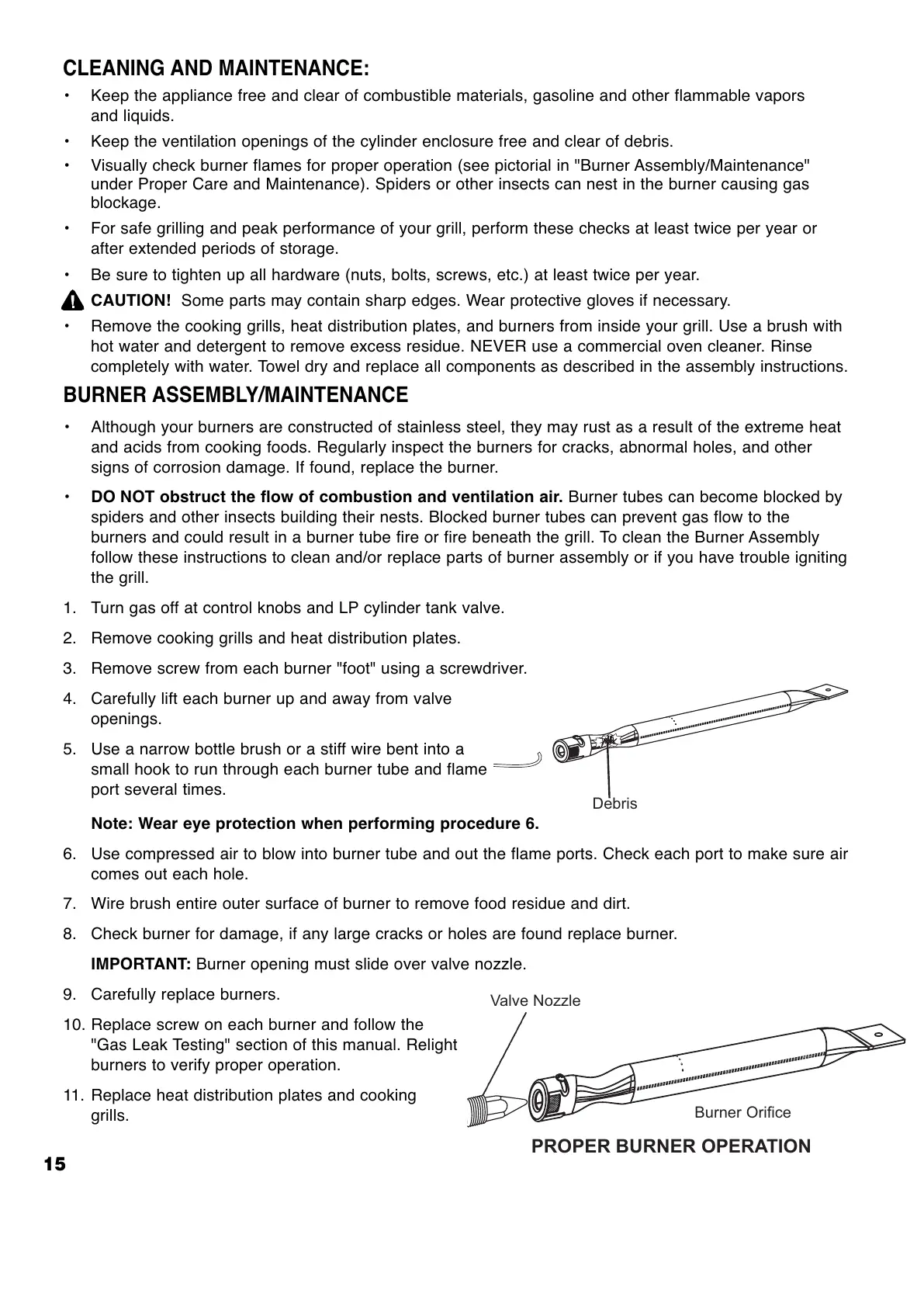 burners and could result in a burner tube fire or fire beneath the grill. To clean the Burner Assembly