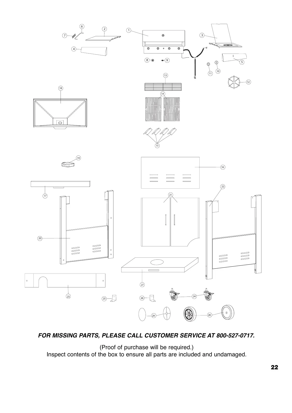 FOR MISSING PARTS, PLEASE CALL CUSTOMER SERVICE AT 800-527-0717.