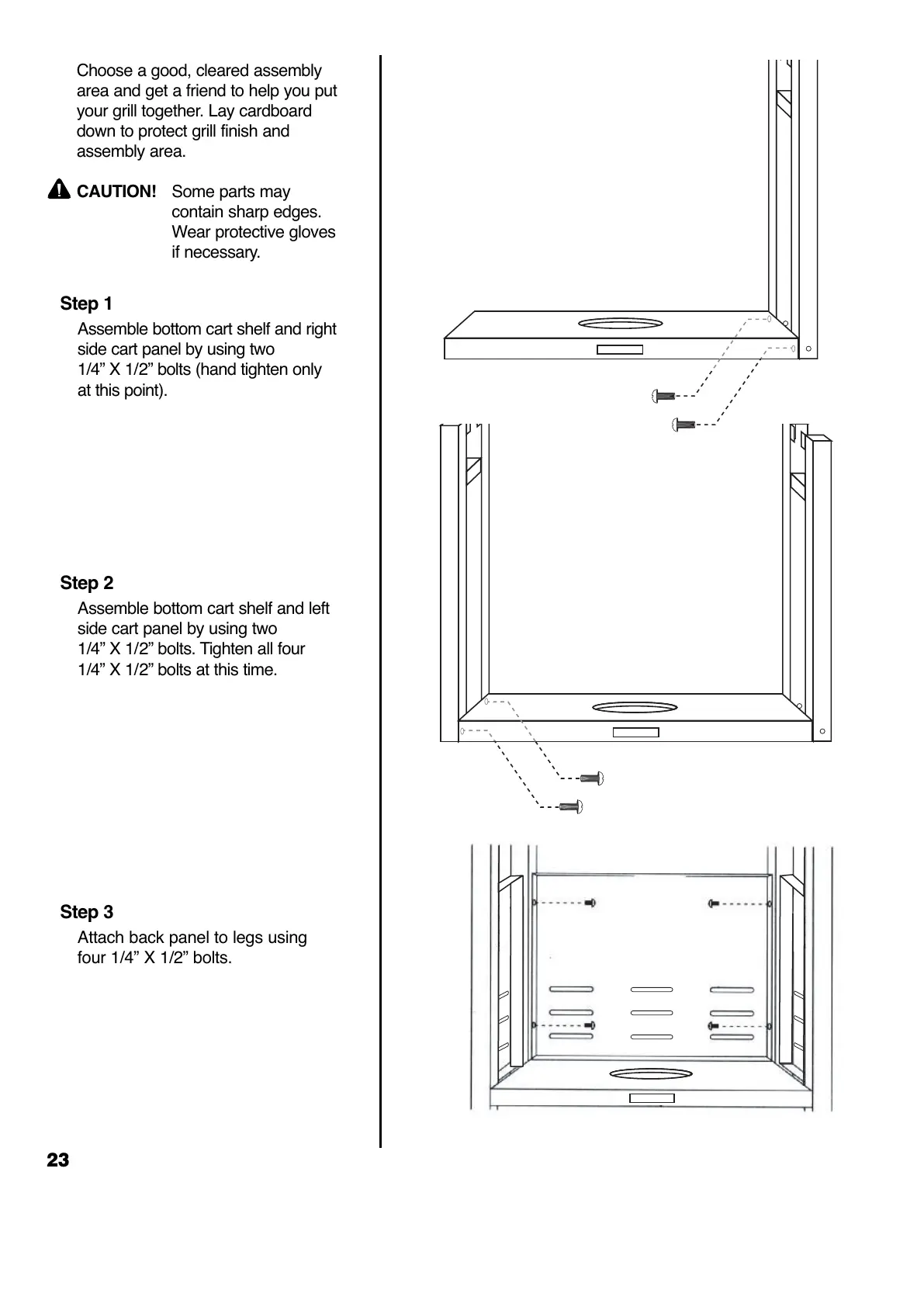 1/4” X 1/2” bolts (hand tighten only