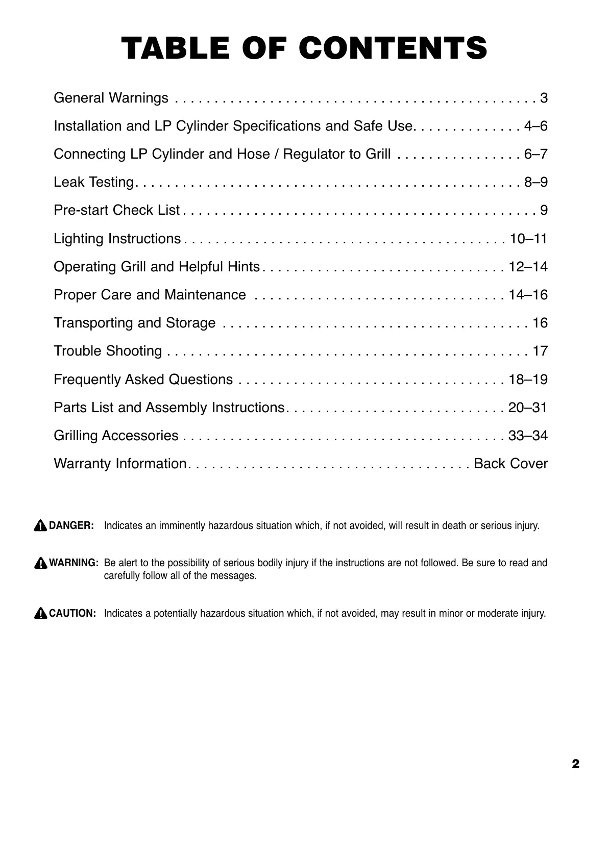 Grilling Accessories . . . . . . . . . . . . . . . . . . . . . . . . . . . . . . . . . . . . . . . . . 33–34