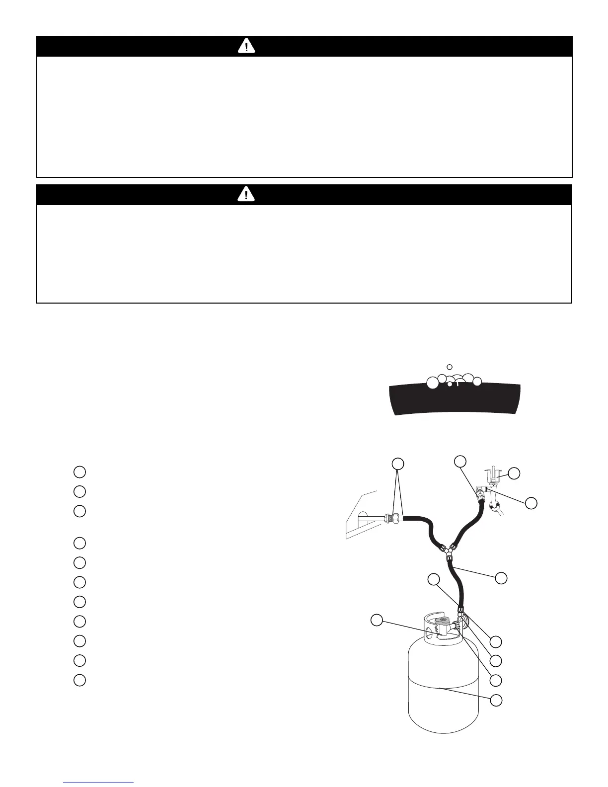 • Every time the LP gas cylinder is refilled or if any of the gas components are replaced.