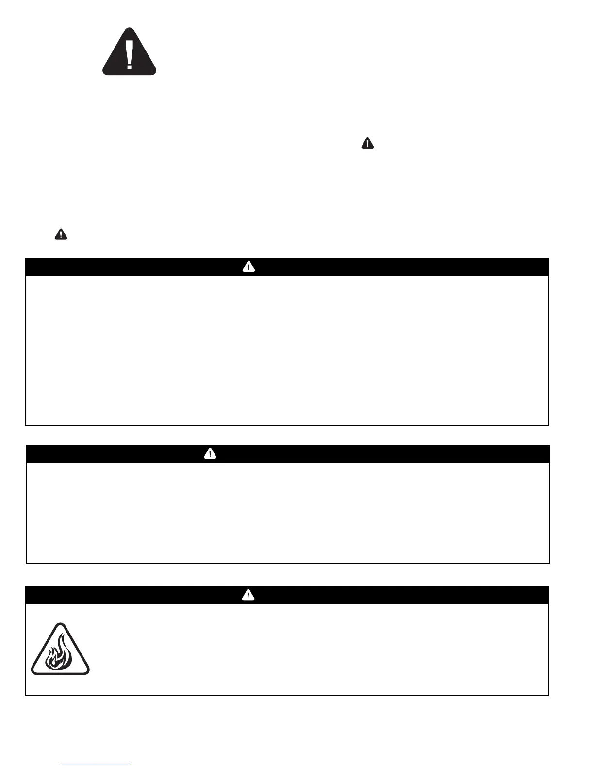 1. NE PAS garder ou utiliser de l’essence ou tout autre inflammable liquide ou vapeur à proximité