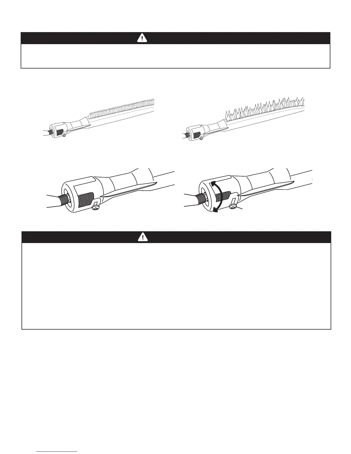 tubes can prevent gas ow to the burners and could result in a burner tube re or re beneath the grill. See “Burner