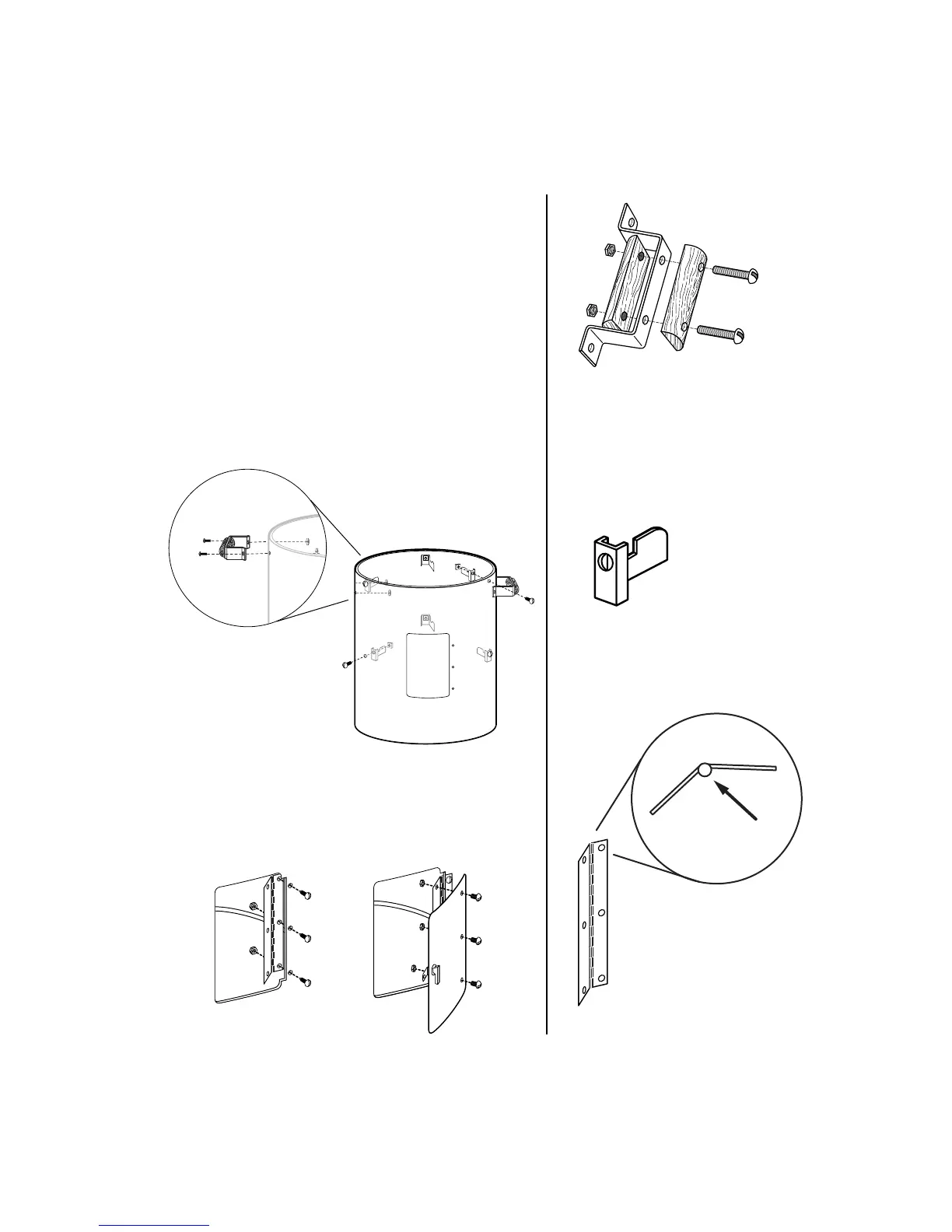 a. Attach hinge to inside of smoker body as illustrated. Use
