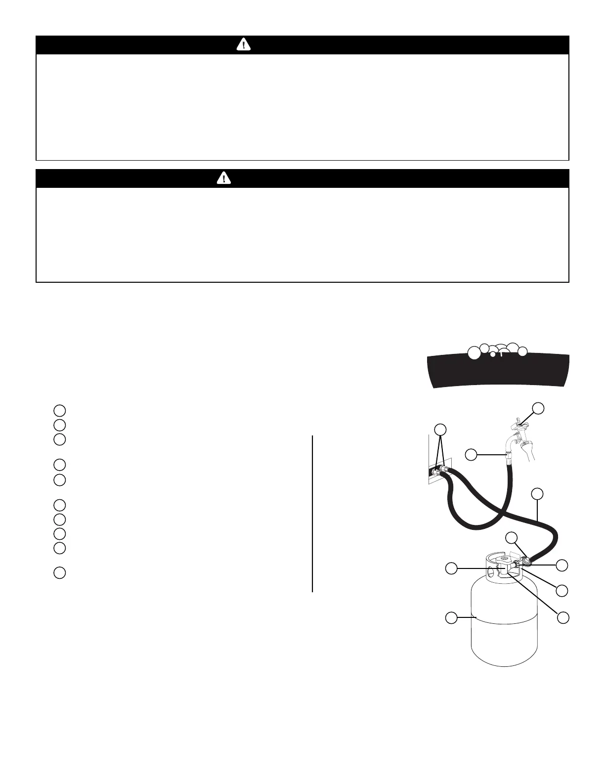 • Cada vez que se llene nuevamente el cilindro de gas de propano líquido o si se reemplaza alguno de los