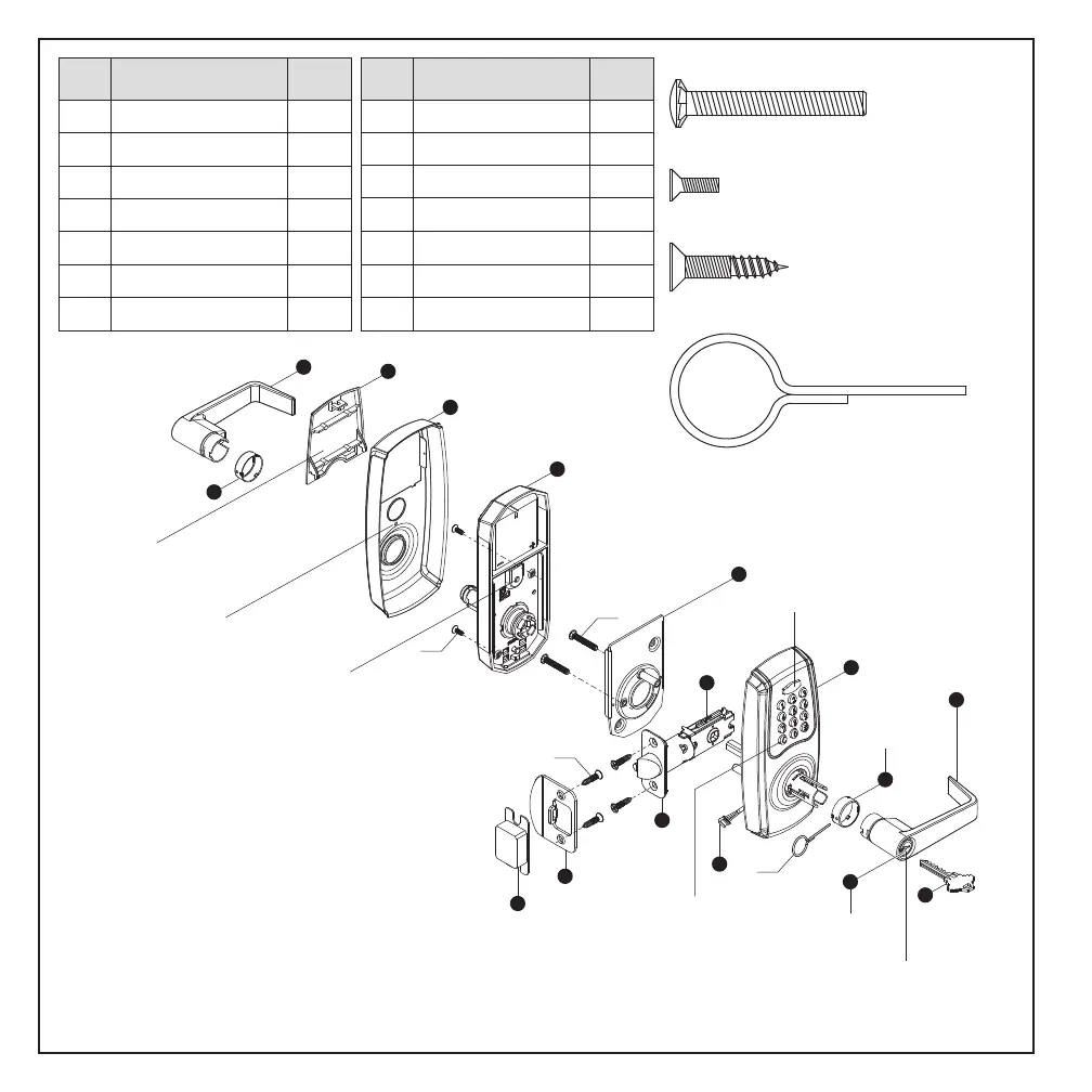 Note 1: Cylinder (B) and collar (N) are pre-installed in the exterior lever (J).