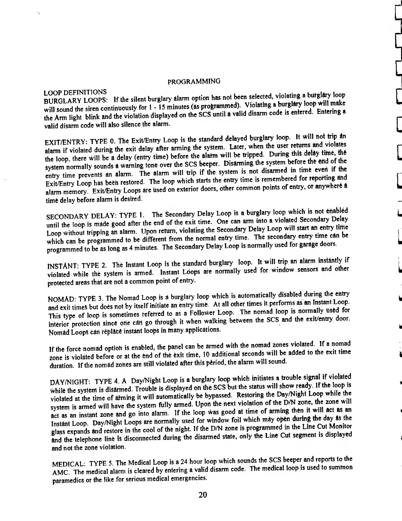 BRINKS BHS 2000A - Loop Definitions; Burglary Loop Types; Special Loop Types