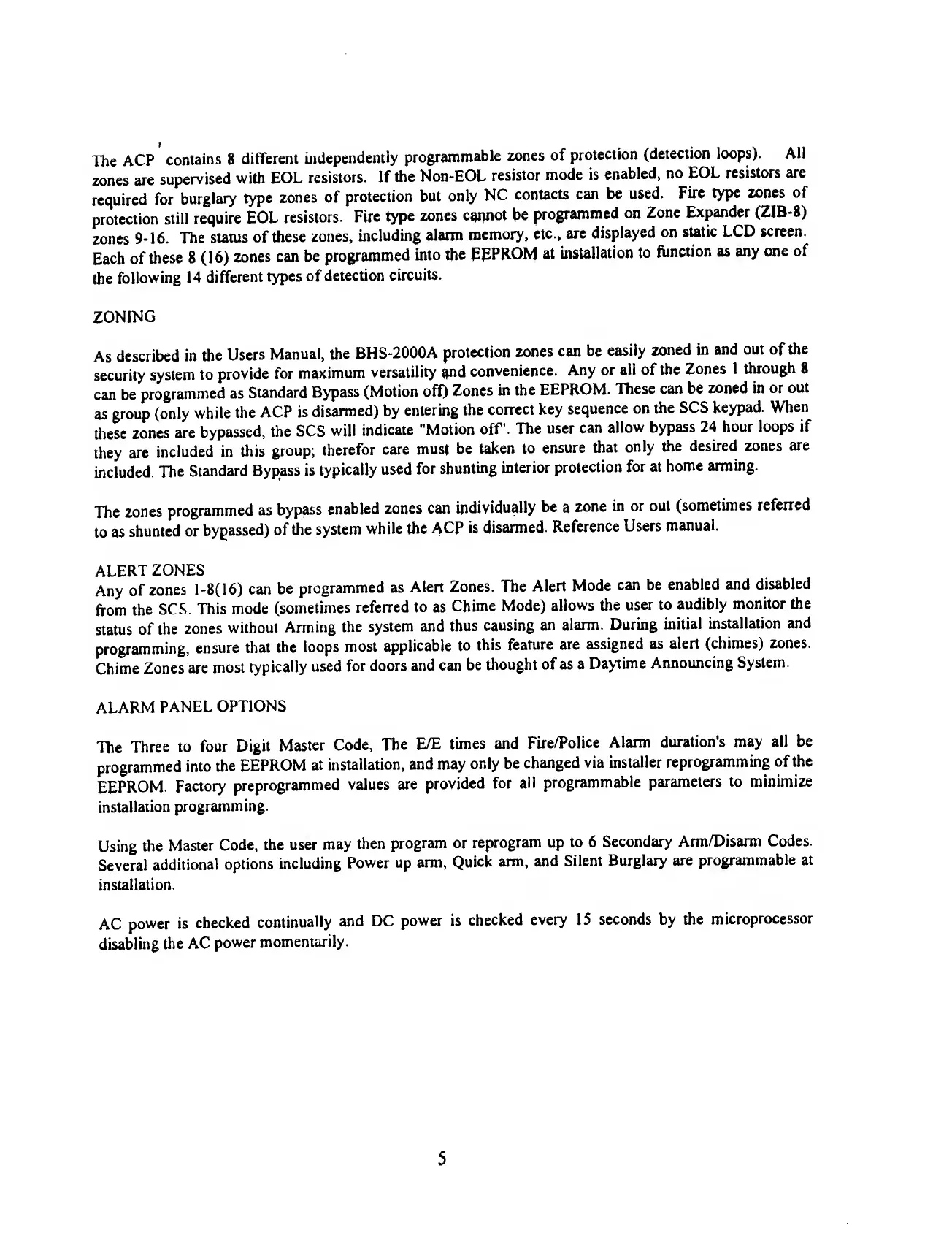 BRINKS BHS 2000A - System Configuration; Zoning and Alert Zones; Panel Options Overview
