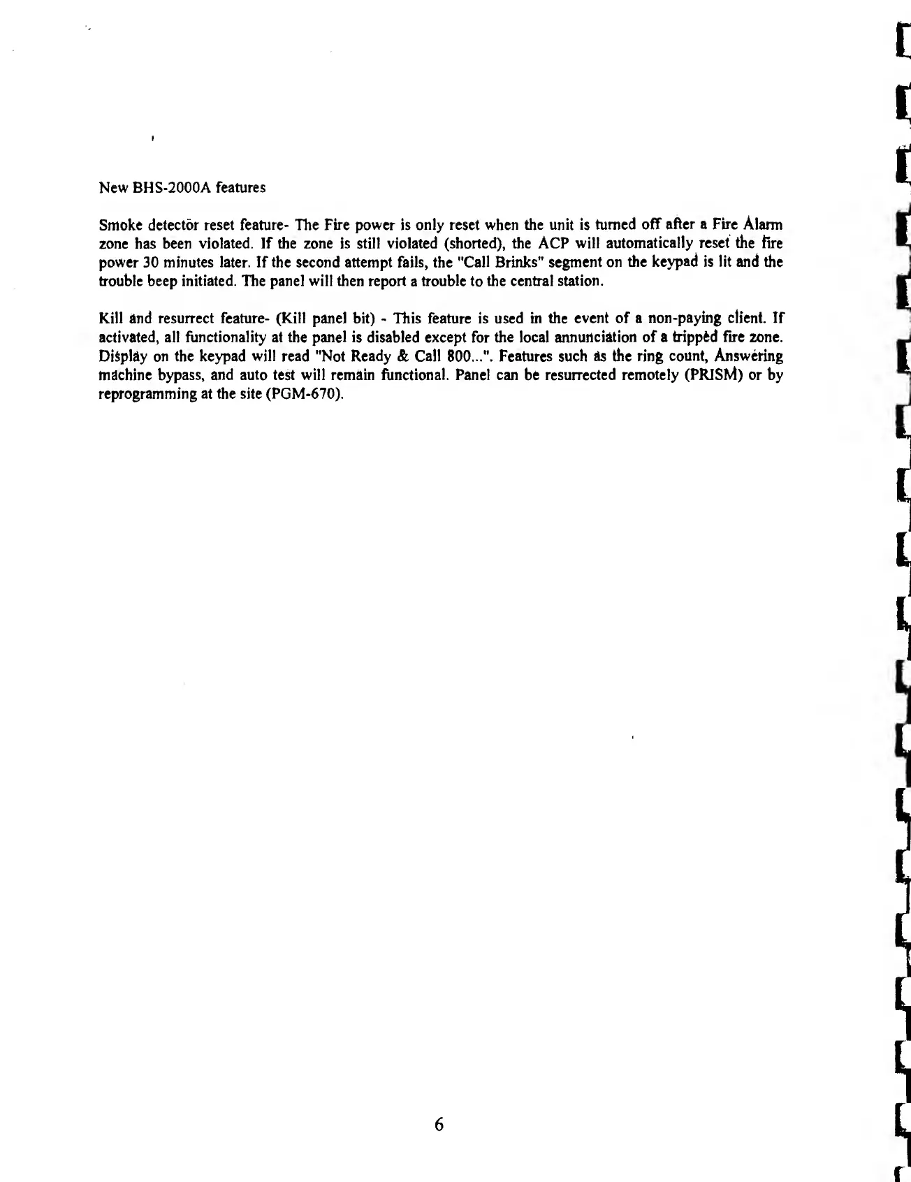 BRINKS BHS 2000A - Special Features; Smoke Detector Reset Feature; Kill and Resurrect Feature