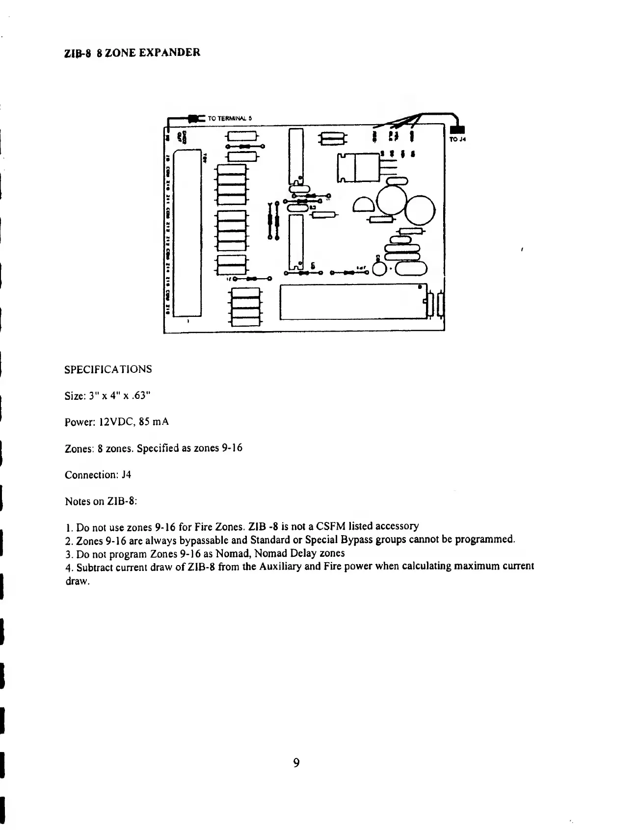BRINKS BHS 2000A - Zone Expander (ZIB-8); ZIB-8 Specifications; ZIB-8 Usage Notes
