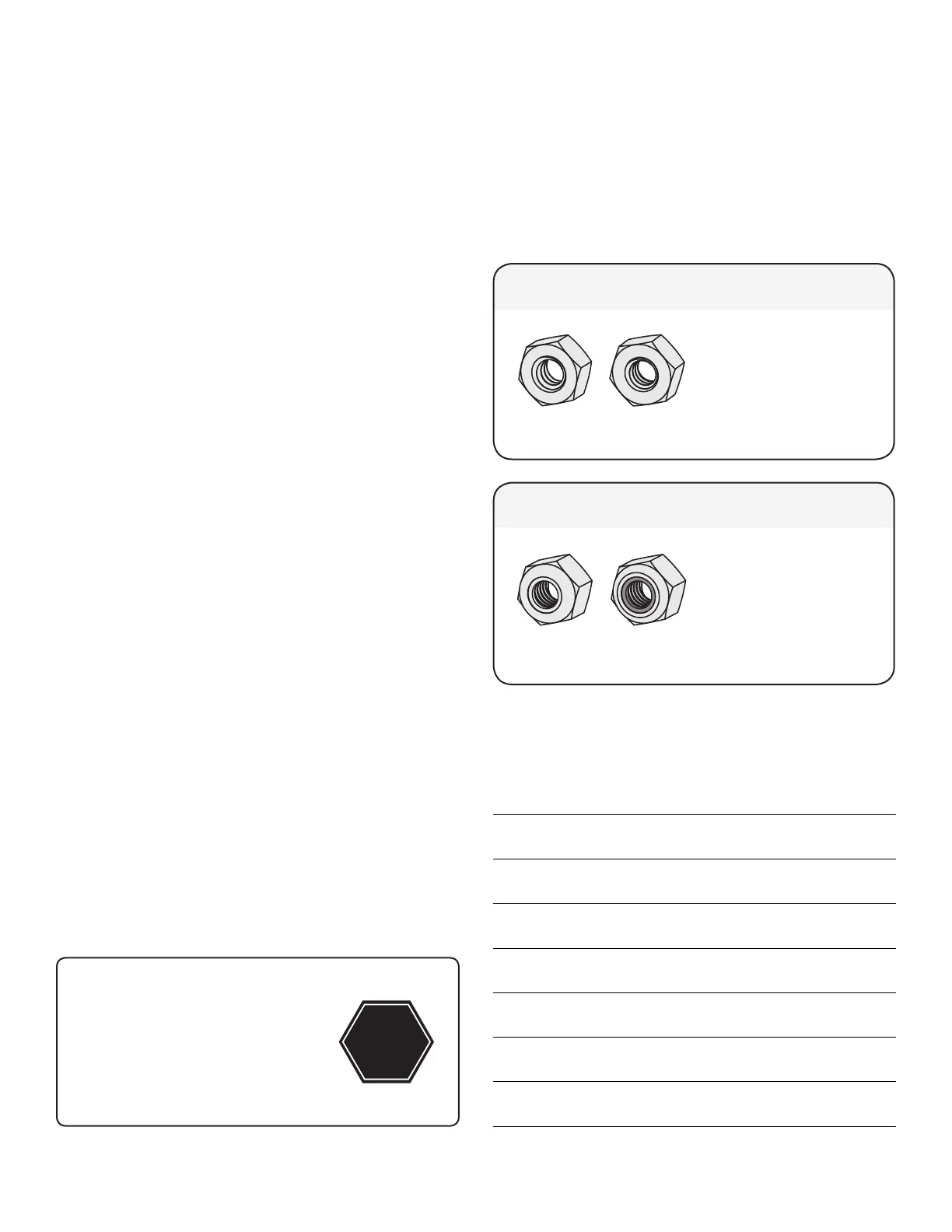 • Keep all nuts, bolts and screws tight to be sure the equipment