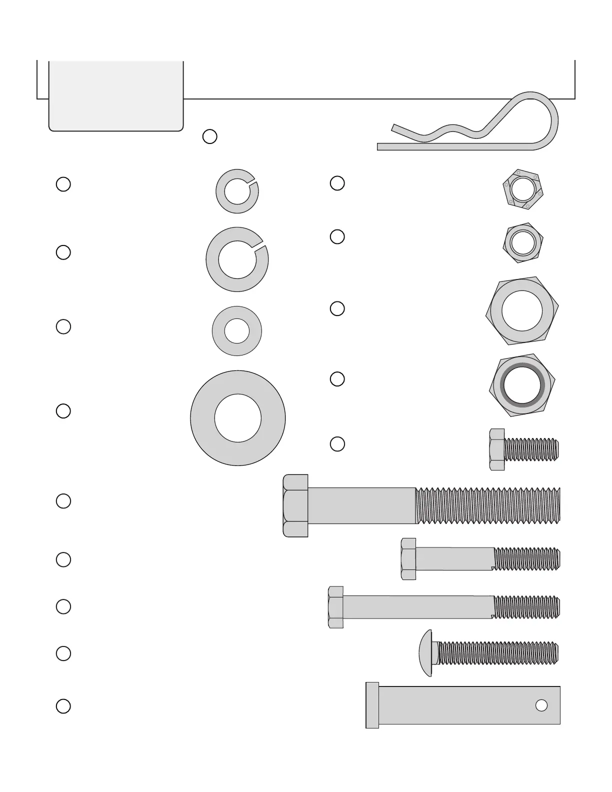 Drawbar Pin: 1/2" x 2 1/2" (x1) . . . . . . . . . . . . . . . . . . . . . .