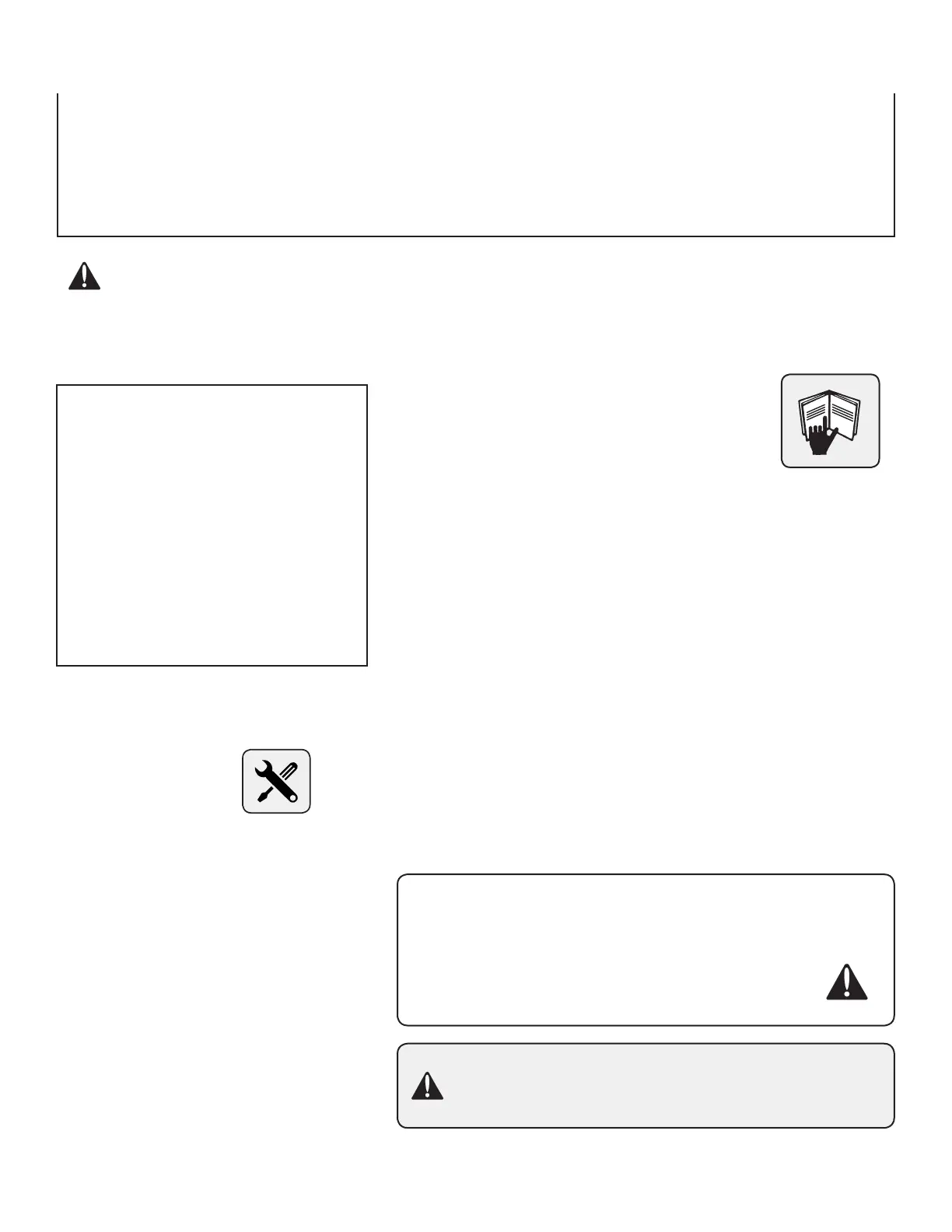 • Keep all nuts, bolts and screws tight to be sure the equipment is in safe