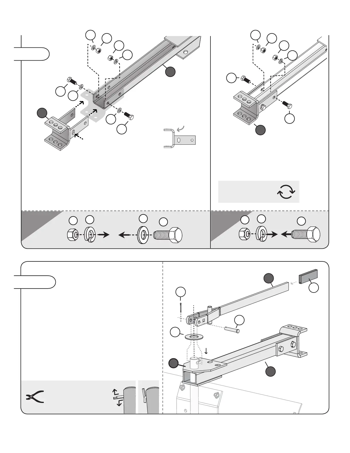 here. Add a at washer (19) to two 1/2" x 1-1/4" Hex Bolts (11) as