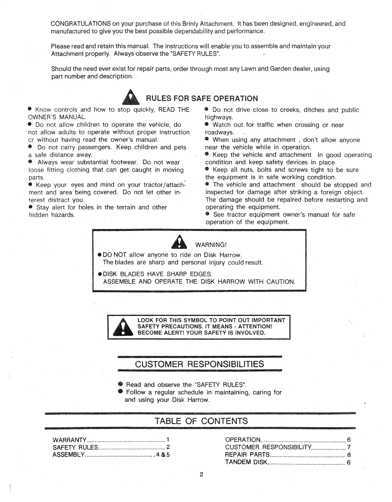 ASSEMBLE AND OPERATE THE DISK HARROW WITH CAUTI·ON.