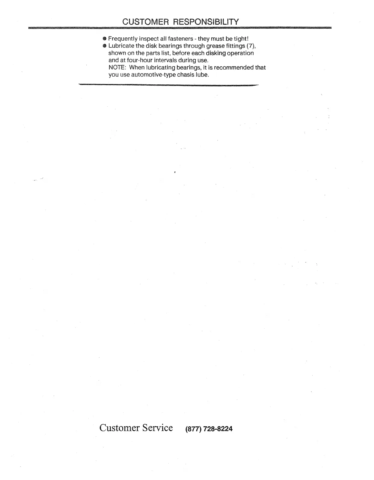 shown on the parts list, before each disking