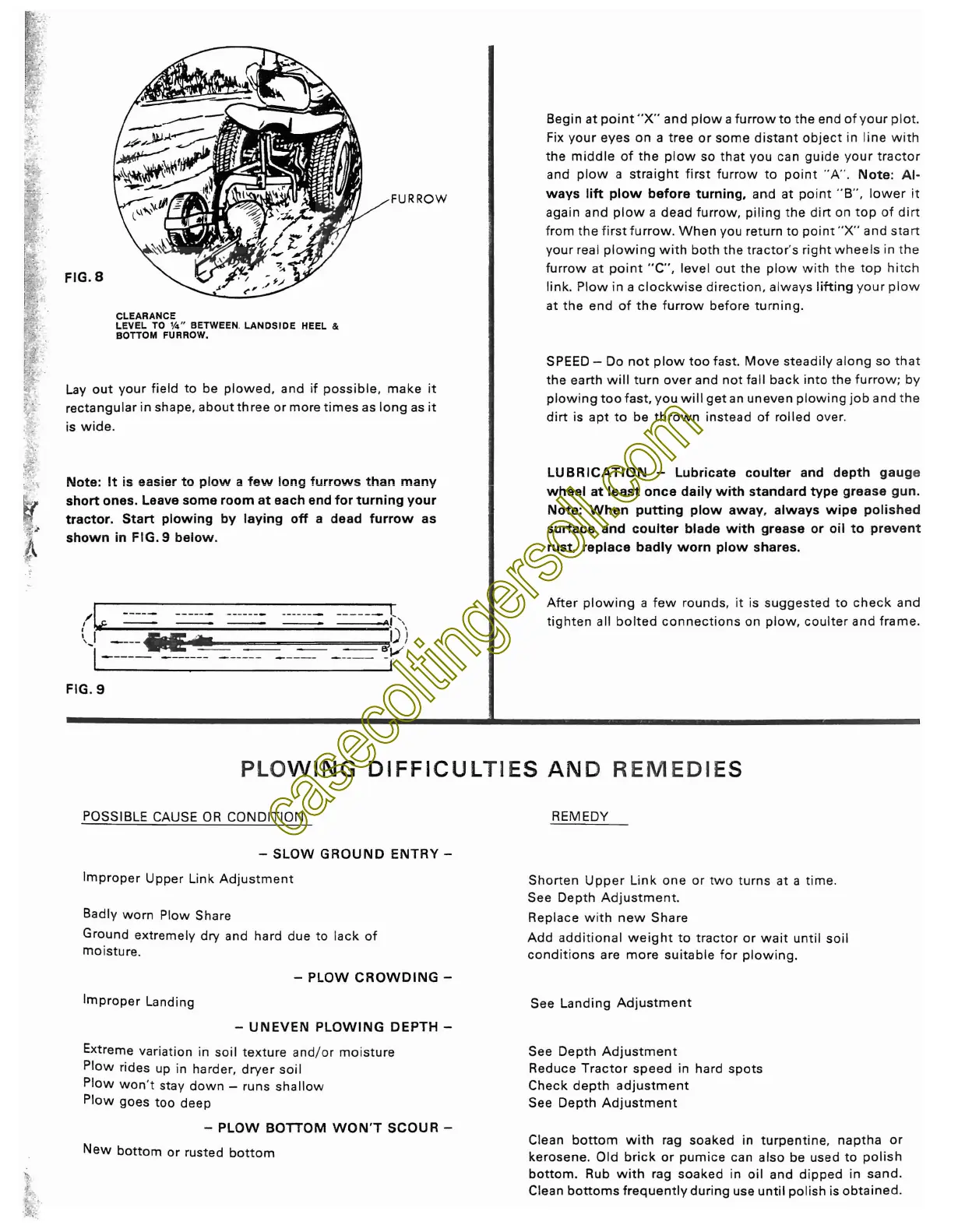 Brinly PP-1200 - Furrow Clearance; Plowing Pattern and Technique; Speed; Lubrication