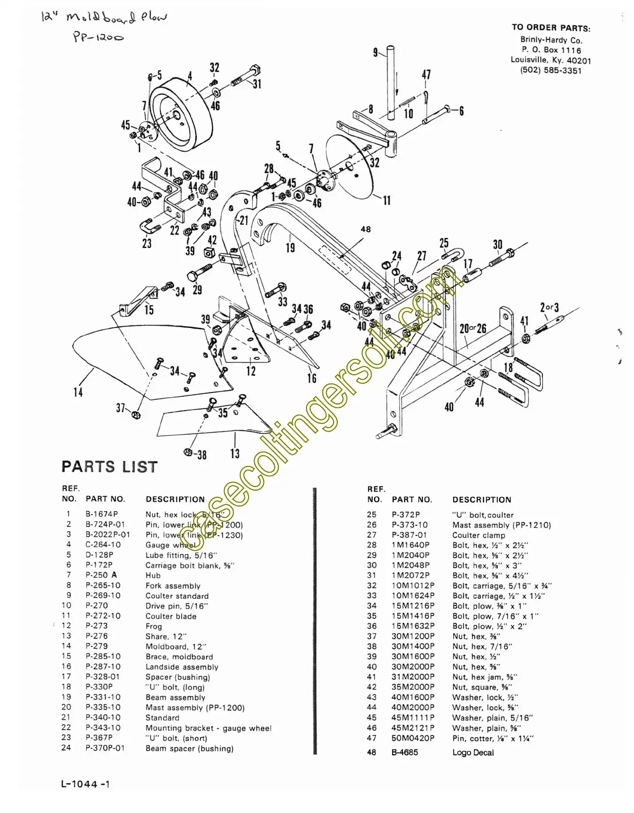 Brinly PP-1200 - Parts List