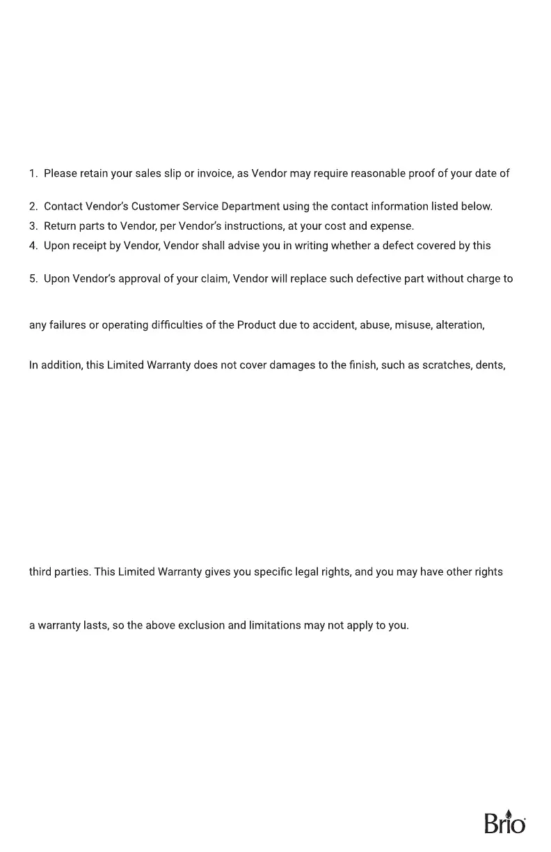 Brio (“Vendor”) warrants to the original purchaser of the Brio Water Coolers (the “Product”), and
