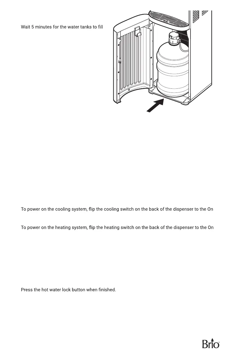 IMPORTANT: Before you turn the dispenser on and activate the hot and cold switches, ensure