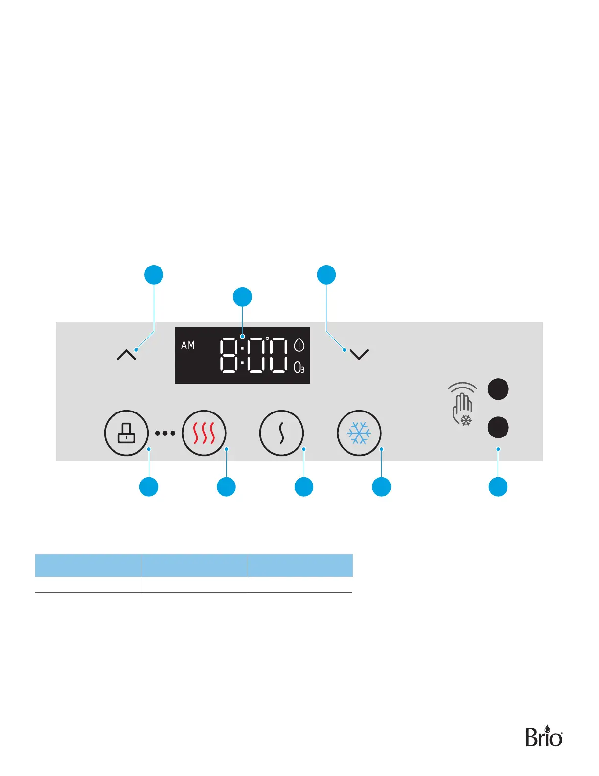 2� Clock/Temperature display – Displays the time and water temperature setting for hot and cold water and